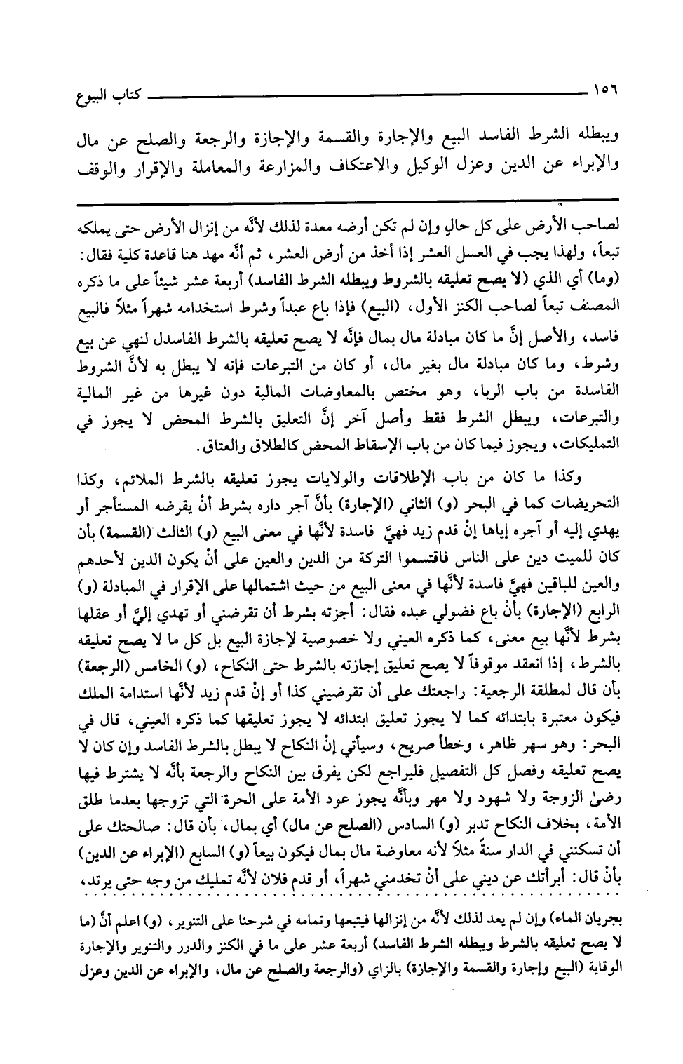 وما كان مبادلة مال بغير مال أو كان من التبرعات فإنه لا يبطل به لأن الشروط الفاسدة من باب الربا وهو مختص بالمعاوضات المالية دون غيرها من غير المالية والتبرعات ويبطل الشرط فقط وأصل آخر أن التعليق بالشرط المحض لا يجوز في التمليكات ويجوز فيما كان من باب الإسقاط المحض كالطلاق والعتاق وكذا ما كان من باب الإطلاقات والولايات يجوز تعليقه بالشرط الملائم وكذا التحريضات كما في البحر