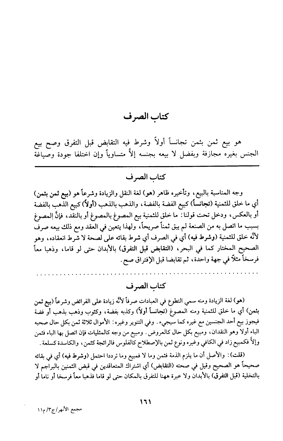 وجه المناسبة بالبيع وتأخيره ظاهر هو لغة النقل والزيادة وشرعا هو بيع ثمن بثمن أي ما خلق للثمنية تجانسا كبيع الفضة بالفضة والذهب بالذهب أو لا كبيع الذهب بالفضة أو بالعكس ودخل تحت قولنا ما خلق للثمنية بيع المصوغ بالمصوغ أو بالنقد فإن المصوغ بسبب ما اتصل به من الصنعة لم يبق ثمنا صريحا ولهذا يتعين في العقد ومع ذلك بيعه صرف لأنه خلق للثمنية