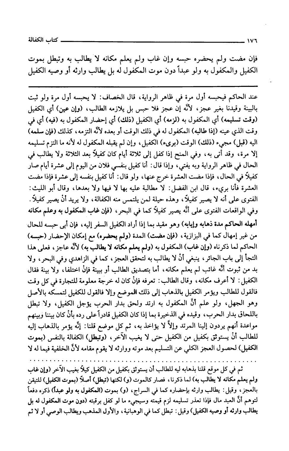 وفي الواقعات الفتوى على أنه يصير كفيلا كما في البحر فإن غاب المكفول به وعلم مكانه أمهله الحاكم مدة ذهابه وإيابه وهو مقيد بما إذا أراد الكفيل السفر إليه فإن أبى حبسه للحال من غير إمهال كما في البزازية فإن مضت المدة ولم يحضره مع إمكان الإحضار حبسه الحاكم لما ذكرناه