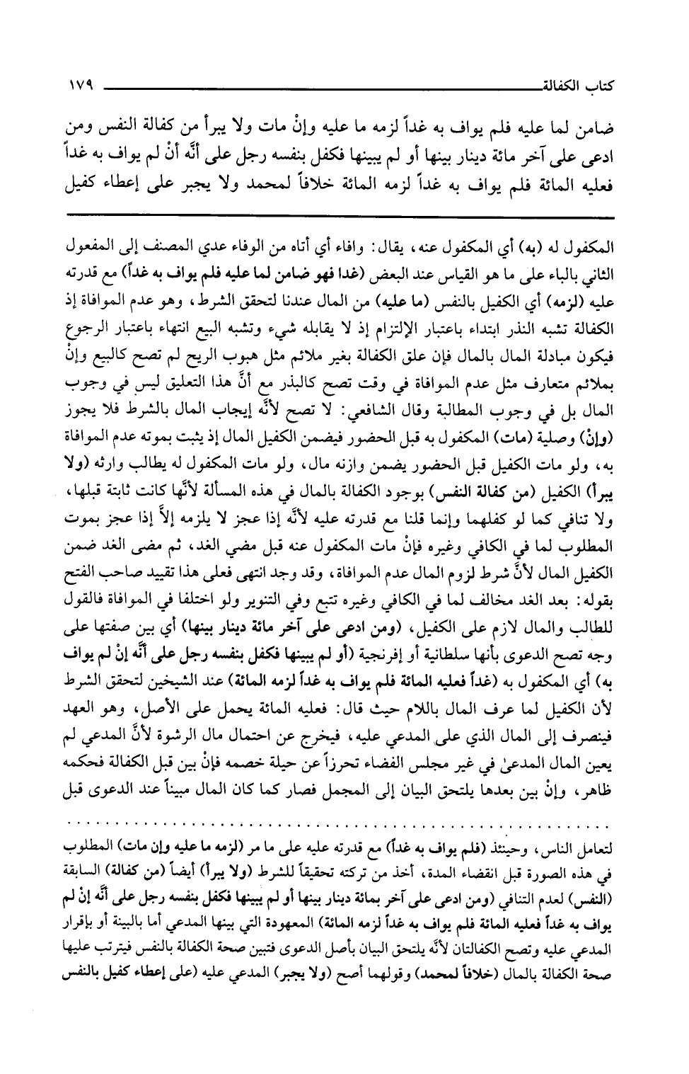 وفي التنوير ولو اختلفا في الموافاة فالقول للطالب والمال لازم على الكفيل ومن ادعى على آخر مائة دينار بينها أي بين صفتها على وجه تصح الدعوى بأنها سلطانية أو إفرنجية أو لم يبينها فكفل بنفسه رجل على أنه إن لم يواف به أي المكفول به غدا فعليه المائة فلم يواف به غدا لزمه المائة عند الشيخين لتحقق الشرط لأن الكفيل لما عرف المال باللام حيث قال فعليه المائة يحمل على الأصل وهو العهد فينصرف إلى المال الذي على المدعى عليه فيخرج عن احتمال مال الرشوة لأن المدعي لم يعين المال المدعى في غير مجلس القضاء تحرزا عن حيلة خصمه فإن بين قبل الكفالة فحكمه ظاهر وإن بين بعدها يلتحق البيان إلى المجمل فصار كما كان المال مبينا عند الدعوى قبل