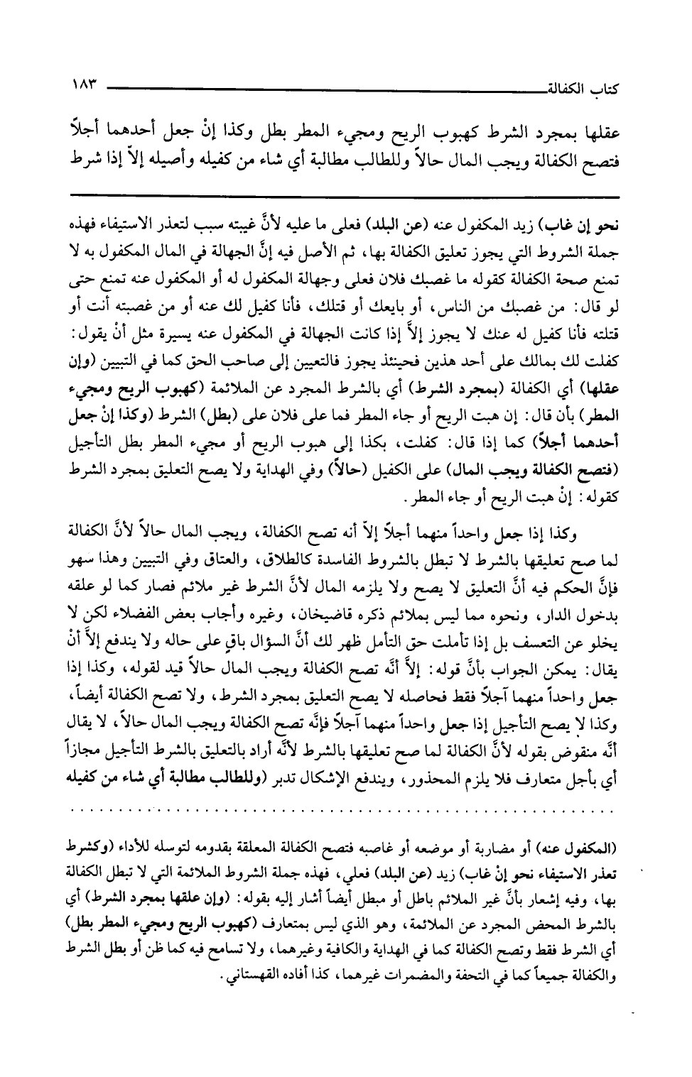 وفي الهداية ولا يصح التعليق بمجرد الشرط كقوله إن هبت الريح أو جاء المطر وكذا إذا جعل واحدا منهما آجلا إلا أنه تصح الكفالة ويجب المال حالا لأن الكفالة لما صح تعليقها بالشرط لا تبطل بالشروط الفاسدة كالطلاق والعتاق