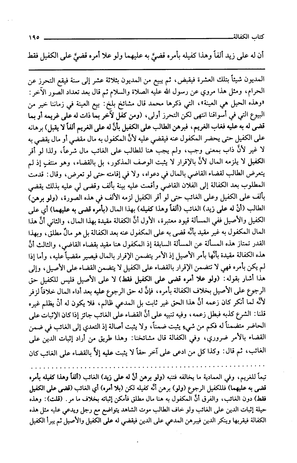 والثاني أن هذا المال المكفول به غير مقيد بأنه قضي به على المكفول عنه بعد الكفالة بل هو مال مطلق وبهذا القدر تمتاز هذه المسألة عن المسألة السابقة إذ المكفول هنا مقيد بقضاء القاضي