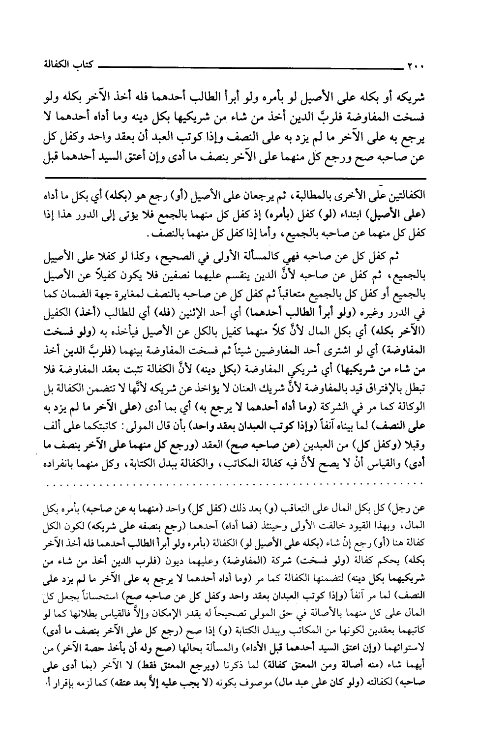 قيد بالمفاوضة لأن شريك العنان لا يؤاخذ عن شريكه لأنها لا تتضمن الكفالة بل الوكالة كما مر في الشركة وما أداه أحدهما لا يرجع به أي بما أدى على الآخر ما لم يزد به على النصف لما بيناه آنفا
