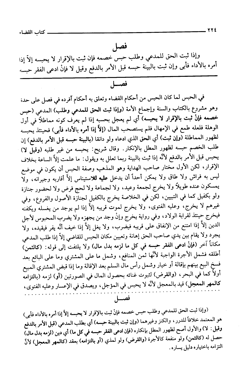 فصل لما كان الحبس من أحكام القضاء وتعلق به أحكام أفرده في فصل على حدة