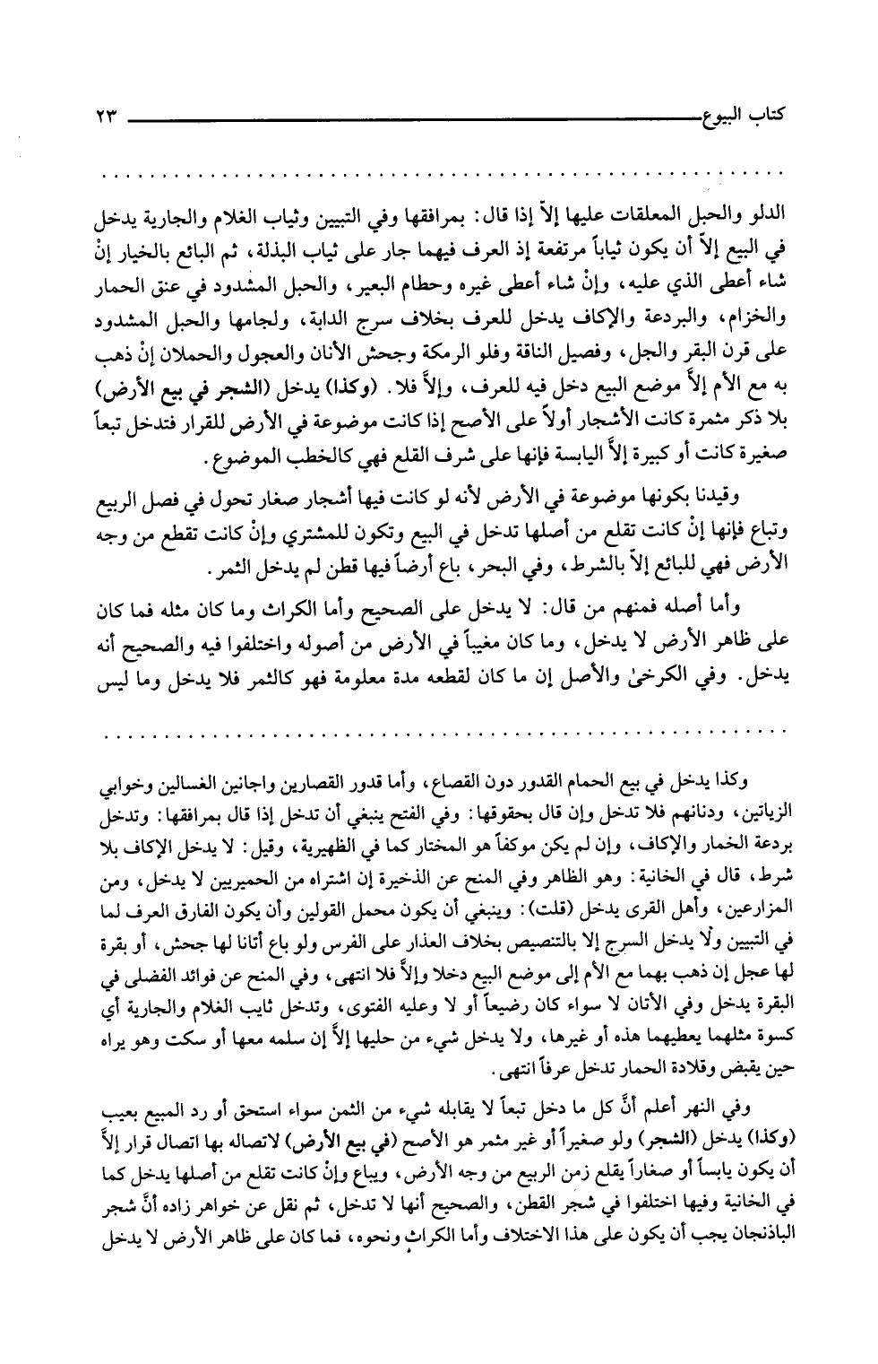 وفي التبيين وثياب الغلام والجارية يدخل في البيع إلا أن يكون ثيابا مرتفعة إذا العرف فيهما جار على ثياب البذلة ثم البائع بالخيار إن شاء أعطى الذي عليه وإن شاء أعطى غيره وخطام البعير والحبل المشدود في عنق الحمار والحزام والبردعة والإكاف يدخل للعرف بخلاف سرج الدابة ولجامها والحبل المشدود على قرن البقر والجل وفصيل الناقة وفلو الرمكة وجحش الأتان والعجول والحملان إن ذهب به مع الأم إلا موضع البيع دخل فيه للعرف وإلا فلا