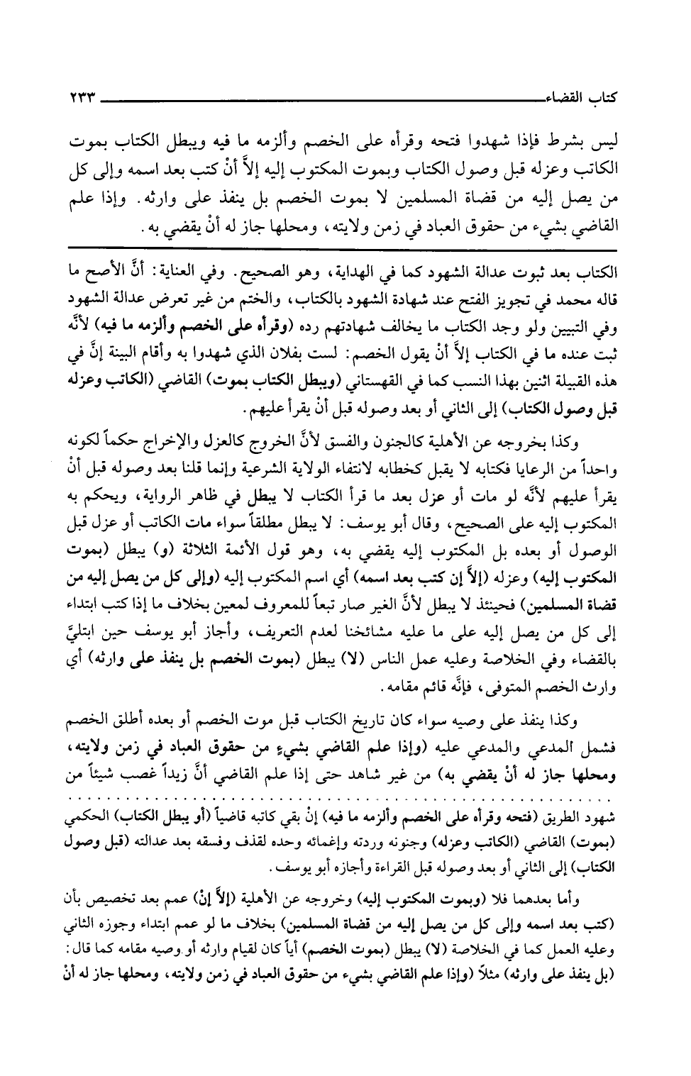 ويبطل الكتاب بموت القاضي الكاتب وعزله قبل وصول الكتاب إلى الثاني أو بعد وصوله قبل أن يقرأ عليهم وكذا بخروجه عن الأهلية كالجنون والفسق لأن الخروج كالعزل والإخراج حكما لكونه واحدا من الرعايا فكتابه لا يقبل كخطابه لانتفاء الولاية الشرعية وإنما قلنا بعد وصوله قبل أن يقرأ عليهم لأنه لو مات أو عزل بعدما قرأ الكتاب لا يبطل في ظاهر الرواية ويحكم به المكتوب إليه على الصحيح