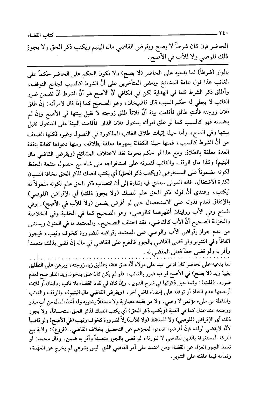 بالواو شرطا لما يدعيه على الحاضر لا يصح ولا يكون الحكم على الحاضر حكما على الغائب هذا قول عامة المشايخ وبعض المتأخرين على أن الشرط كالسبب لجامع التوقف وأطلق ذكر الشرط كما في الهداية لكن في الكافي إن الأصح هو أن الشرط إن تضمن ضرر الغائب لا يعطى له حكم السبب قال قاضي خان وهو الصحيح كما إذا قال لامرأته إن طلق فلان زوجته فأنت طالق فأقامت بينة أن فلانا طلق زوجته لا تقبل بينتها في الأصح وإن لم يتضمنه فهو كالسبب كما لو علق امرأته بدخول فلان الدار فأقامت البينة على الدخول تقبل بينتها