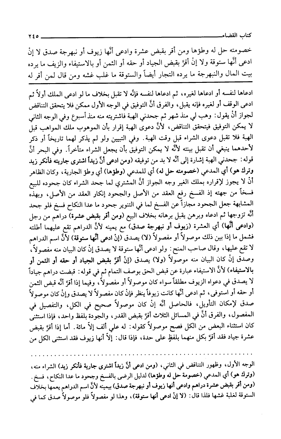 ادعاها لنفسه أو ادعاها لغيره ثم ادعاها لنفسه فإنه لا تقبل بخلاف ما لو ادعى الملك أولا ثم ادعى الوقف له أو لغيره فإنه يقبل والفرق أن التوفيق في الوجه الأول ممكن فلا يتحقق التناقض لجواز أن يقول وهب لي منذ شهر ثم جحدني الهبة فاشتريته منه منذ أسبوع وفي الوجه الثاني لا يمكن التوفيق فيتحقق التناقض لأن دعوى الهبة إقرار بأن الموهوب ملك الواهب قبل الهبة فلا تقبل دعوى الشراء قبل وقت الهبة وفي التبيين ولو لم يذكر لهما تاريخا أو ذكر لأحدهما ينبغي أن تقبل بينته لأنه لا يمكن التوفيق بأن يجعل الشراء متأخرا