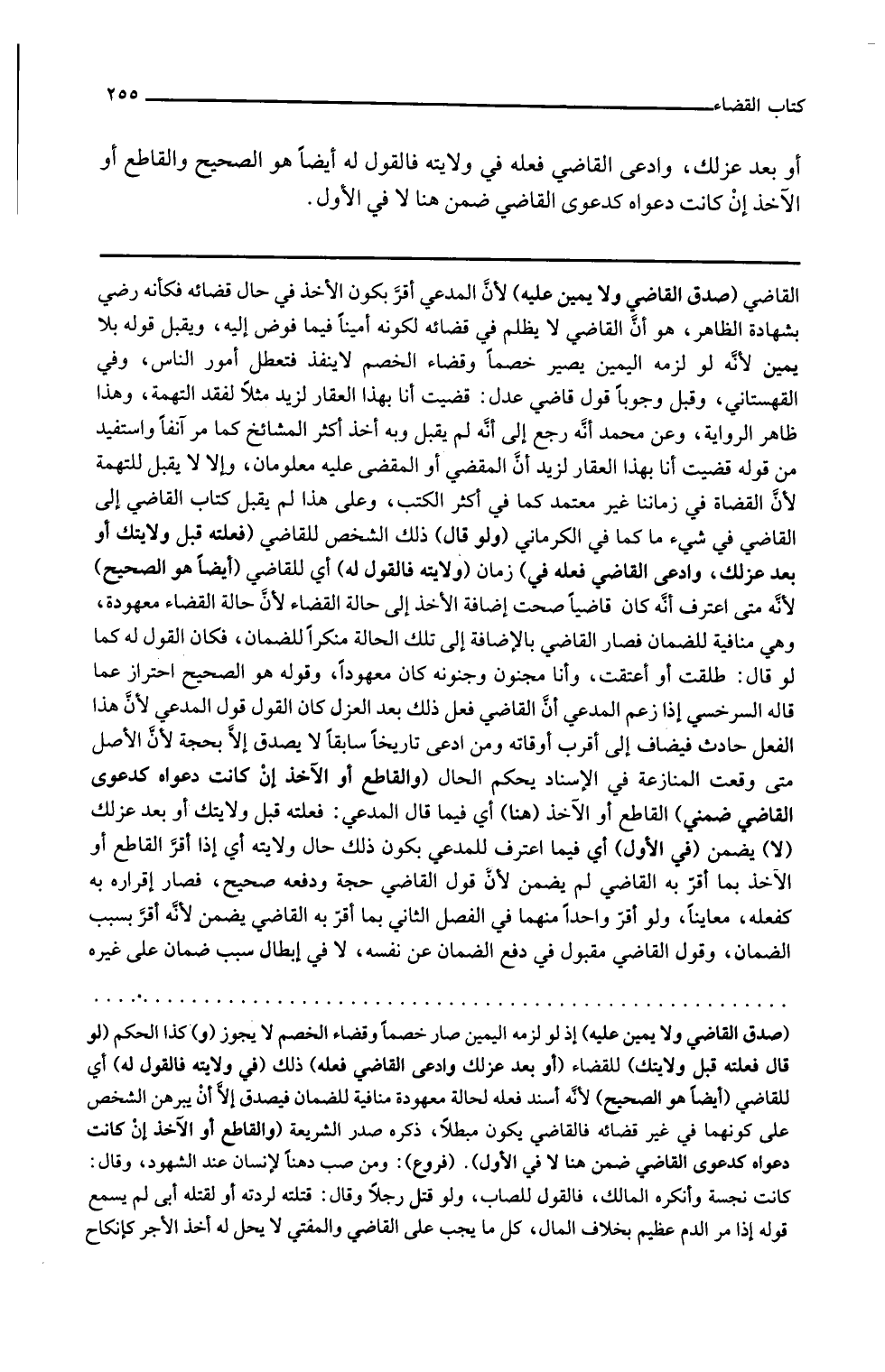 وقوله هو الصحيح احتراز عما قاله السرخسي إذا زعم المدعي أن القاضي فعل ذلك بعد العزل كان القول قول المدعي لأن هذا الفعل حادث فيضاف إلى أقرب أوقاته ومن ادعى تاريخا سابقا لا يصدق إلا بحجة لأن الأصل متى وقعت المنازعة في الإسناد يحكم الحال والقاطع أو الآخذ إن كانت دعواه كدعوى القاضي ضمن القاطع أو الآخذ هنا أي فيما قال المدعي فعلته قبل ولايتك أو بعد عزلك لا يضمن في الأول أي فيما اعترف للمدعي بكون ذلك حال ولايته أي إذا أقر القاطع أو الآخذ بما أقر به القاضي لم يضمن لأن قول القاضي حجة ودفعه صحيح فصار إقراره به كفعله معاينا ولو أقر واحد منهما في الفصل الثاني بما أقر به القاضي يضمن لأنه أقر بسبب الضمان وقول القاضي مقبول في دفع الضمان عن نفسه لا في إبطال سبب ضمان على غيره