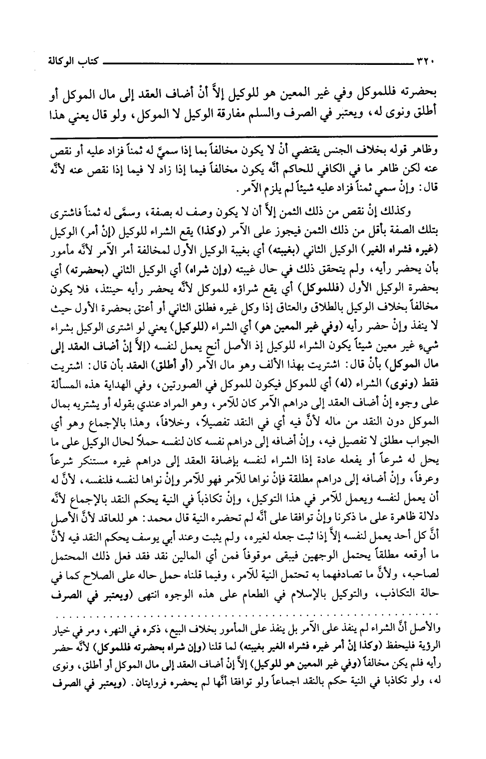 وفي الهداية هذه المسألة على وجوه إن أضاف العقد إلى دراهم الآمر كان للآمر وهو المراد عندي بقوله أو يشتريه بمال الموكل دون النقد من ماله لأن فيه أي في النقد تفصيلا وخلافا وهذا بالإجماع وهو أي الجواب مطلق لا تفصيل فيه وإن أضافه إلى دراهم نفسه كان لنفسه حملا لحال الوكيل على ما يحل له شرعا أو يفعله عادة إذ الشراء لنفسه بإضافة العقد إلى دراهم غيره مستنكر شرعا وعرفا وإن أضافه إلى دراهم مطلقة فإن نواها للآمر فهو للآمر وإن نواها لنفسه فلنفسه لأن له أن يعمل لنفسه ويعمل للآمر في هذا التوكيل وإن تكاذبا في النية يحكم النقد بالإجماع لأنه دلالة ظاهرة على ما ذكرنا وإن توافقا على أنه لم تحضره النية قال محمد هو للعاقد لأن الأصل أن كل أحد يعمل لنفسه إلا إذا ثبت جعله لغيره ولم يثبت وعند أبي يوسف يحكم النقد فيه لأن ما أوقعه مطلقا يحتمل الوجهين فيبقى موقوفا فمن أي المالين نقد فقد فعل ذلك المحتمل لصاحبه ولأن ما تصادفهما به تحتمل النية للآمر وفيما قلناه حمل حاله على الصلاح كما في حالة التكاذب والتوكيل بالإسلام في الطعام على هذه الوجوه انتهى