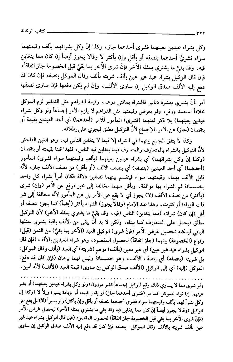ولو وكل بشراء عبدين بعينهما بلا ذكر ثمنهما فشرى المأمور للآمر أحدهما أي أحد العبدين بقيمته أو بنقصان جاز عن الآمر بالإجماع لأن التوكيل مطلق فيجري على إطلاقه وكذا لا يتفق الجمع بينهما في الشراء إلا فيما لا يتغابن الناس فيه وهو الغبن الفاحش لأن التوكيل بالشراء بالمتعارف والمتعارف فيما يتغابن فيه الناس فلهذا قلنا بقيمته أو بنقصان