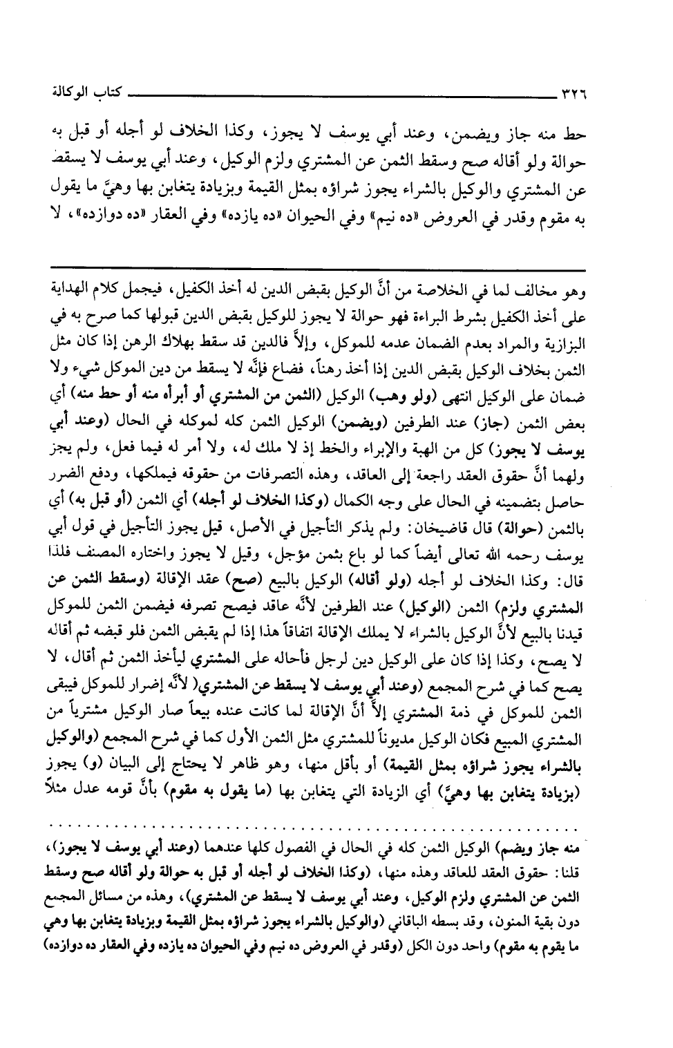 ولو وهب الوكيل الثمن من المشتري أو أبرأه منه أو حط منه أي بعض الثمن جاز عند الطرفين ويضمن الوكيل الثمن كله لموكله في الحال وعند أبي يوسف لا يجوز كل من الهبة والإبراء والحط إذ لا ملك له ولا أمر له فيما فعل ولم يجز ولهما أن حقوق العقد راجعة إلى العاقد وهذه التصرفات من حقوقه فيملكها ودفع الضرر حاصل بتضمينه في الحال على وجه الكمال