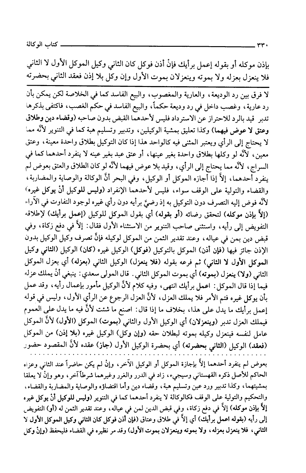 وفي البحر أن الوكالة والوصاية والمضاربة والقضاء والتولية على الوقف سواء فليس لأحدهما الانفراد
