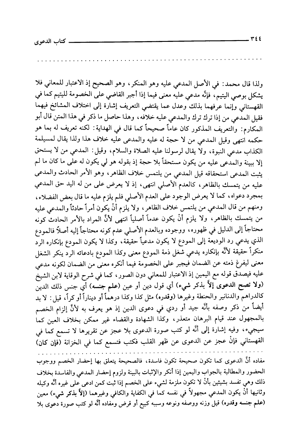 إذ لا يعرض على من له اليد حق المدعي بمجرد دعواه كما لا يعرض الوجود على العدم الأصلي فلم يلزم عليه ما قال بعض الفضلاء ومنهم من قال المدعي من يلتمس خلاف الظاهر ولا يلزم أن يكون أمرا حادثا والمدعى عليه من يتمسك بالظاهر ولا يلزم أن يكون عدما أصليا انتهى لأن المراد بالأمر الحادث كونه محتاجا إلى الدليل في ظهوره ووجوده وبالعدم الأصلي عدم كونه محتاجا إليه أصلا فالمودع الذي يدعي رد الوديعة إلى المودع لا يكون مدعيا حقيقة وكذا لا يكون المودع بإنكاره الرد منكرا حقيقة لأنه بإنكاره يدعي شغل ذمة المودع معنى وكذا المودع بادعائه الرد ينكر الشغل معنى ليفرغ ذمته عن الضمان فيجبر على الخصومة فيما أنكره معنى من الضمان لكونه مدعى عليه فيصدق قوله مع اليمين إذ الاعتبار للمعاني دون الصور كما في شرح الوقاية لابن الشيخ ولا تصح الدعوى إلا بذكر شيء أي قول دين أو عين علم جنسه أي جنس ذلك الدين كالدراهم والدنانير والحنطة وغيرها وقدره مثل كذا وكذا درهما أو دينارا أو كرا قيل لا بد أيضا من ذكره وصفه بأنه جيد أو رديء في دعوى الدين إذ هو يعرف به لأن إلزام الخصم بالمجهول عند قيام البرهان متعذر وكذا الشهادة والقضاء غير ممكن بخلاف العين كما سيجيء وفيه إشارة إلى أنه لو كتب صورة الدعوى بلا عجز عن تقريرها لا تسمع كما في القهستاني فإن عجز عن الدعوى عن ظهر القلب فكتب فتسمع كما في الخزانة فإن كان