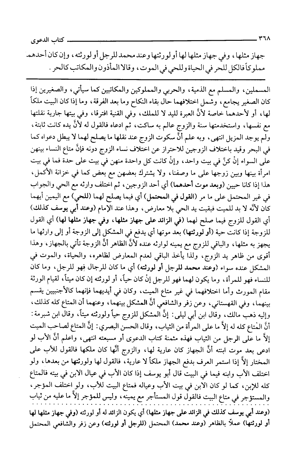 وقال ابن شبرمة أن المتاع كله له إلا ما على المرأة من الثياب وقال الحسن البصري إن المتاع لصاحب الميت إلا ما على الرجل من الثياب فهذه مثمنة كتاب الدعوى أو مسبعته انتهى