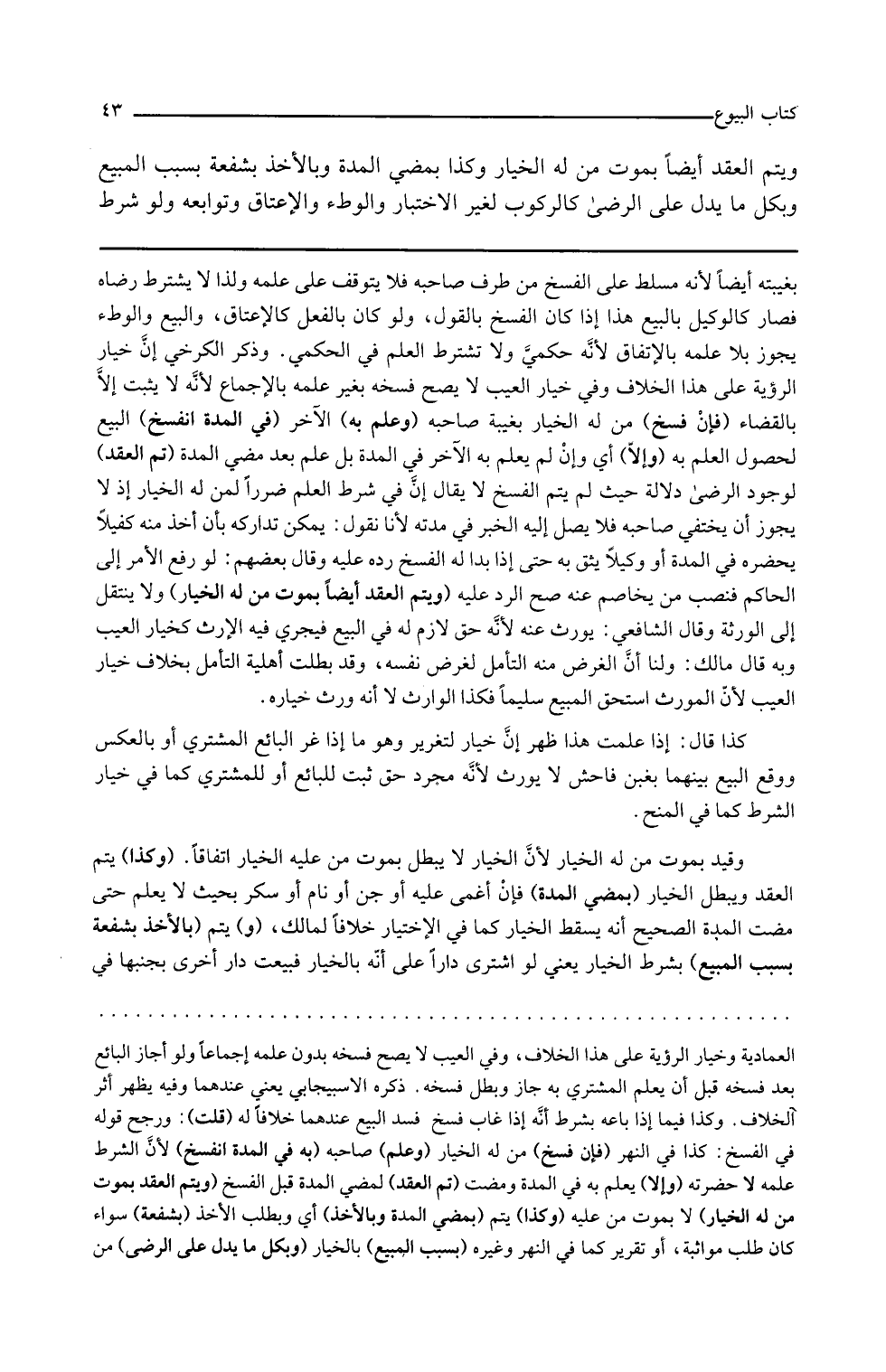 ويتم العقد أيضا بموت من له الخيار ولا ينتقل إلى الورثة