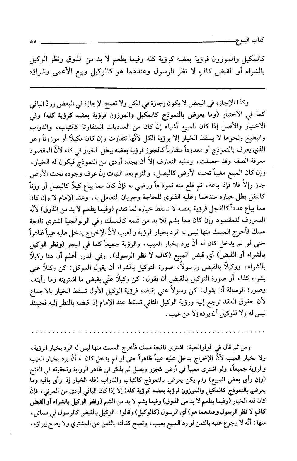 وكذا الإجازة في البعض لا يكون إجازة في الكل ولا تصح الإجازة في البعض ورد الباقي كما في الاختيار وما يعرض بالنموذج كالمكيل والموزون فرؤية بعضه كرؤية كله