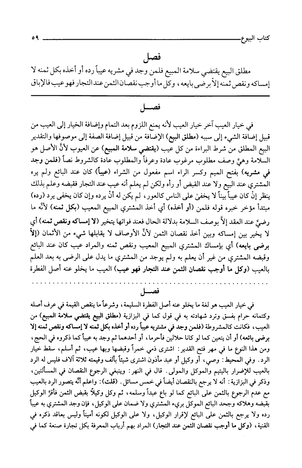 فصل في خيار العيب