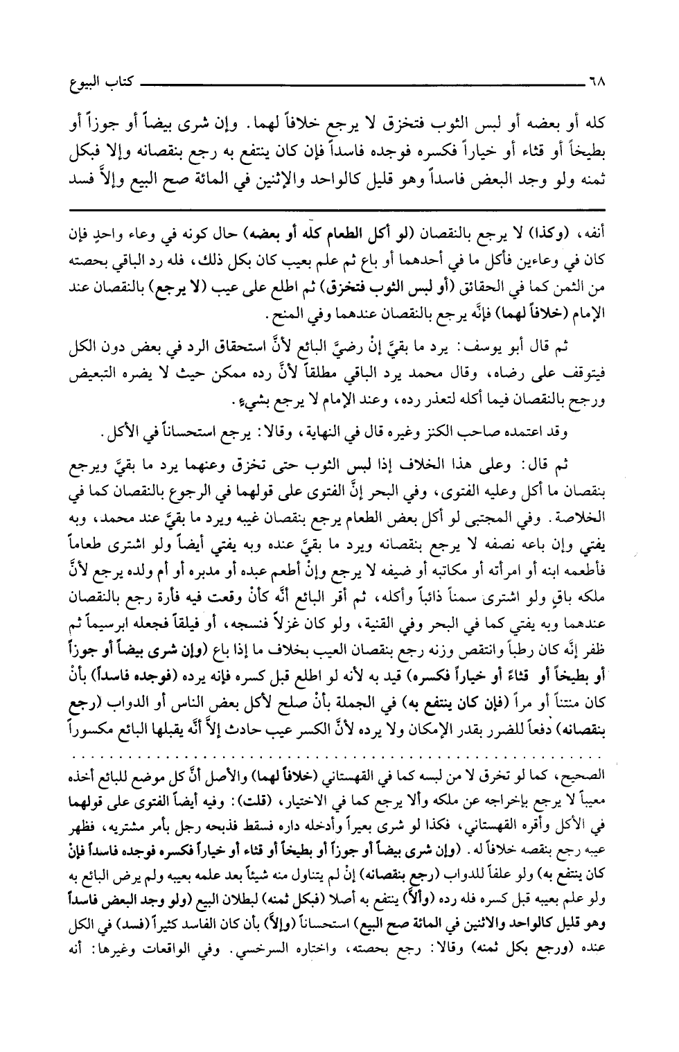 وفي البحر أن الفتوى على قولهما في الرجوع بالنقصان كما في الخلاصة