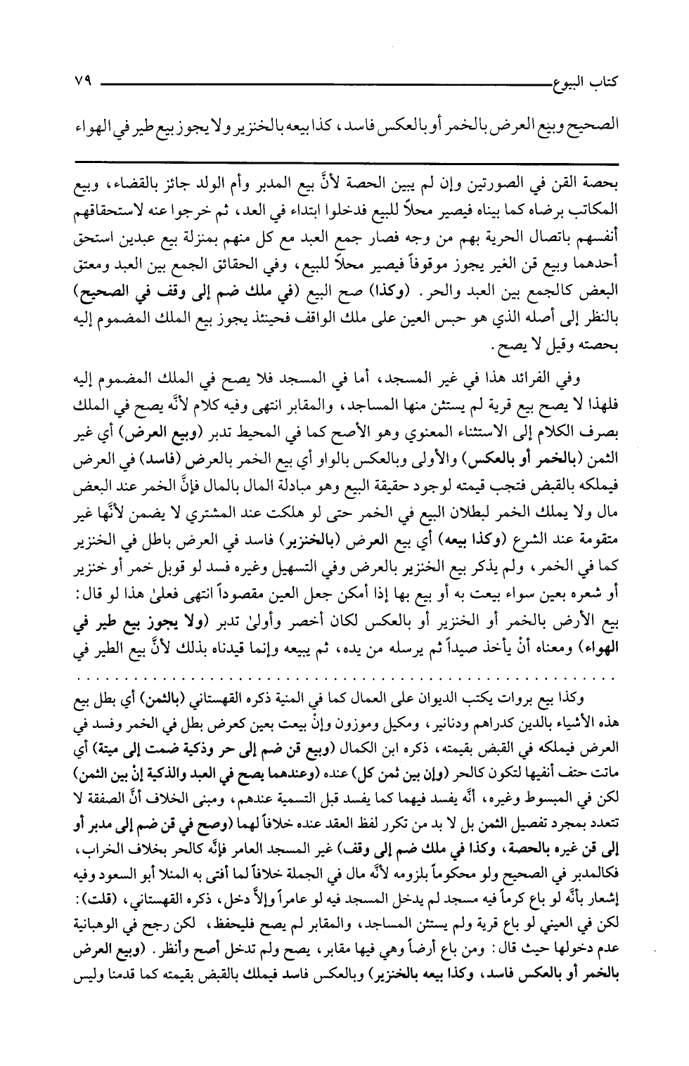 وفي الفوائد هذا في غير المسجد أما في المسجد فلا يصح في الملك المضموم إليه فلهذا لا يصح بيع قرية لم يستثن منها المساجد والمقابر انتهى