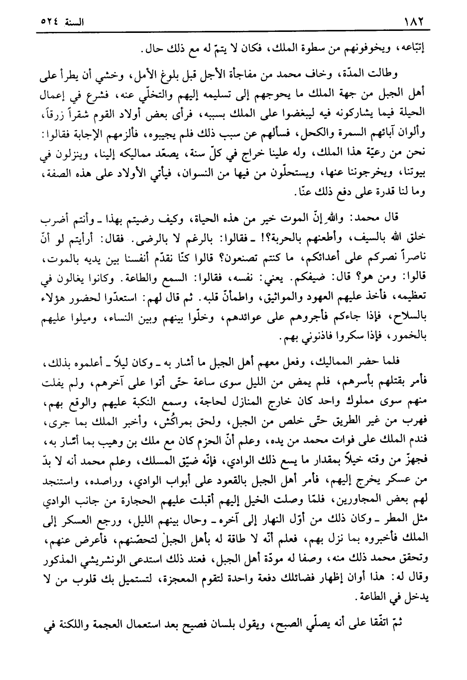إتباعه، ويخوفونهم من سطوة الملك، فكان لا يتم له مع ذلك حال. وطالت المدة، وخاف محمد من مفاجأة الأجل قبل بلوغ الأمل، وخشي أن يطرأ على