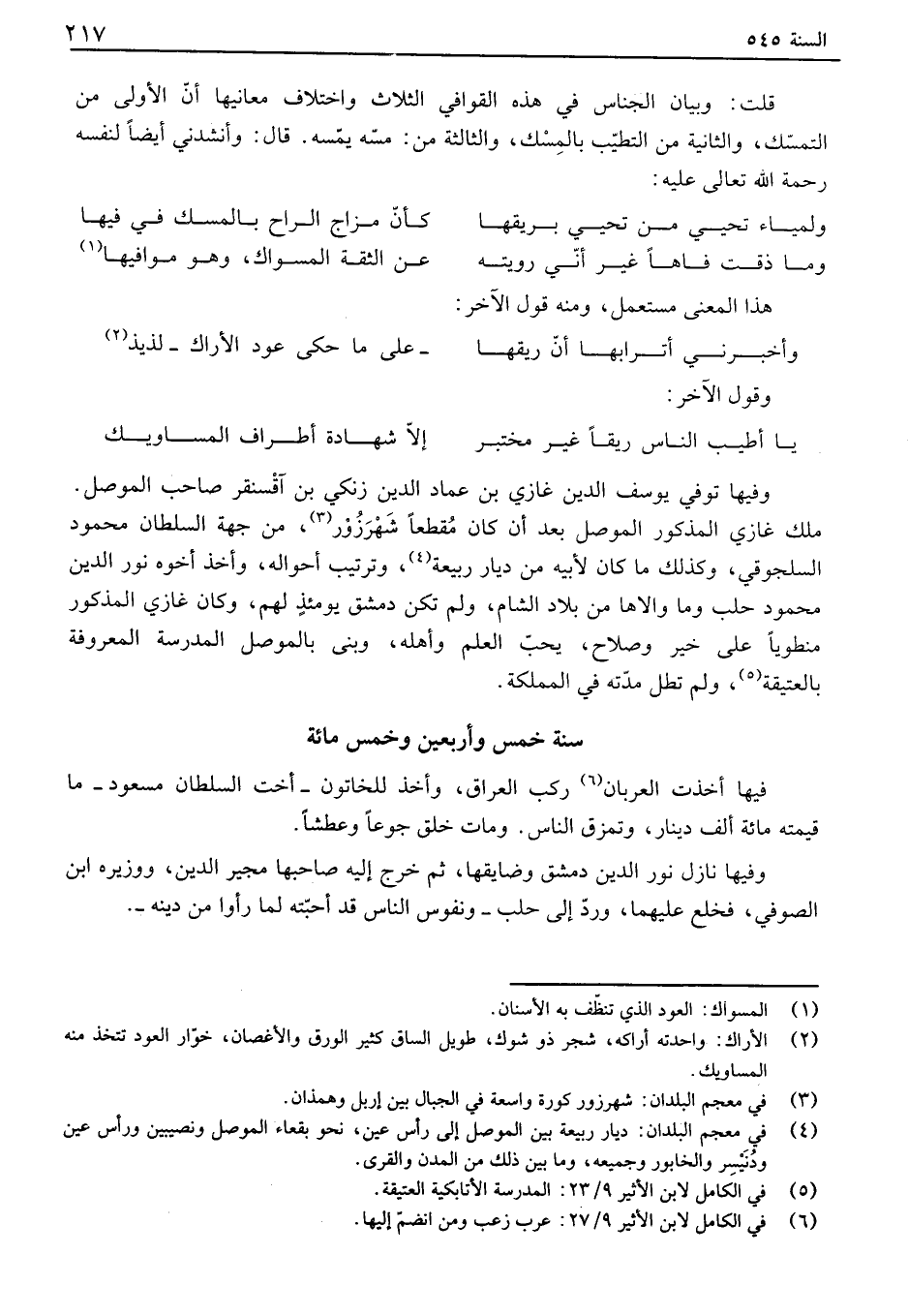 وفيها توفي يوسف الدين غازي بن عماد الدين زنكي بن آقسنقر صاحب الموصل ملك غازي المذكور الموصل بعد أن كان مقطعاً شهرزو، من جهة السلطان محمود السلجوقي، وكذلك ما كان لأبيه من ديار ربيع، وترتيب أحوآله، وأخذ أخوه نور الدين محمود حلب وما والاها من بلاد الشام، ولم تكن دمشق يومئذ لهم، وكان غازي المذكور منطوياً على خير وصلاح، يحب العلم وأهله، وبنى بالموصل المدرسة المعروفة بالعتيقة، ولم تطل مدته في المملكة.
