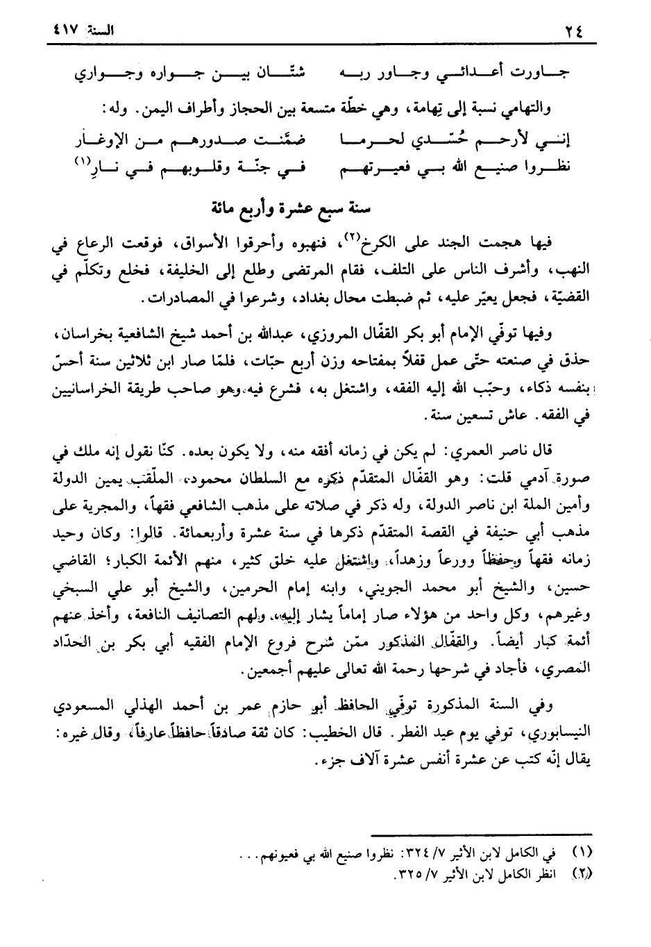 سنة سبع عشرة وأربع مائة