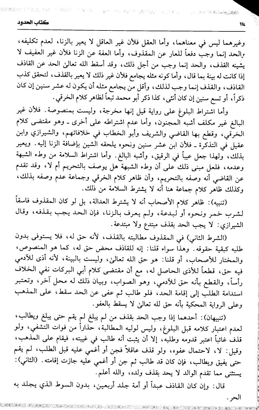 وأما اشتراط البلوغ على رواية قيل إنها مخرجة ، وليست بمنصوصة . فلأن غير البالغ غير مكلف أشبه المجنون ، وأما عدم اشتراطه على أخرى وهو مقتضى كلام الخرقي ، وقطع بها القاضي والشريف وأبو الخطاب في خلافاتهم ، والشيرازي وابن عقيل في التذكرة فلأن ابن عشر سنين ونحوه يلحقه الشين بإضافة الزنا إليه . ويعير بذلك ، ولهذا جعل عيباً في الرقيق ، وأشبه البالغ . وأما اشتراط السلامة من وطء الشبهة وعدمه ، فلعل مبنى ذلك على أن وطء الشبهة هل يوصف بالتحريم أم لا ، وقد تقدم عن القاضي أنه وصفه بالتحريم ، وأن ظاهر كلام الخرقي وجماعة عدم وصفه بذلك ، وكذلك ظاهر كلام جماعة هنا أنه لا يشترط السلامة من ذلك .