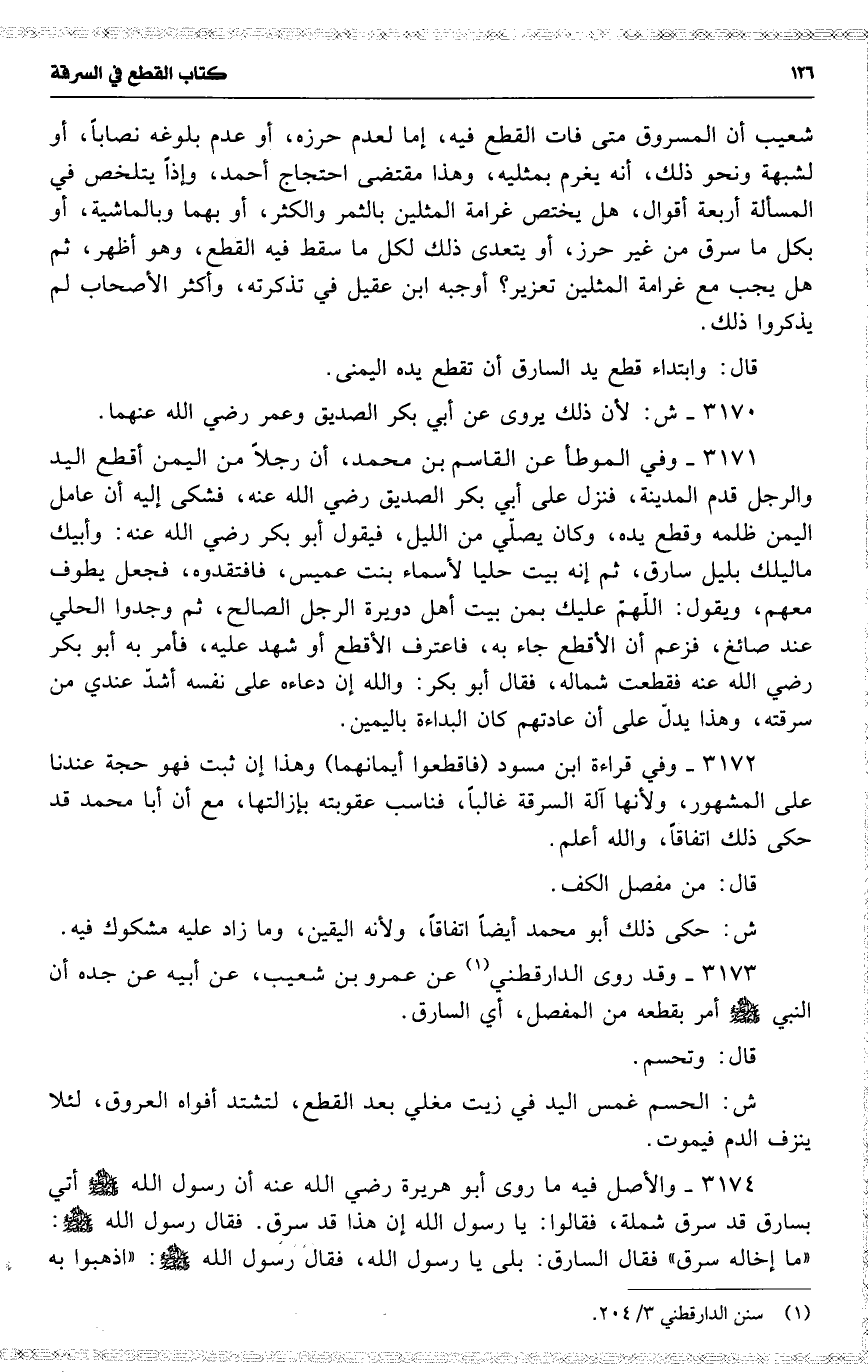 3173 وقد روى الدارقطني عن عمرو بن شعيب ، عن أبيه عن جده أن النبي أمر بقطعه من المفصل ، أي السارق .