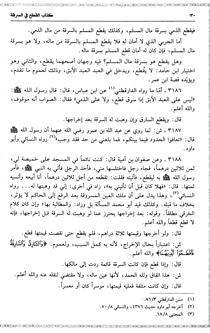 3186 أمّا ما رواه الدارقطني عن ابن عباس ، قال : قال رسول الله : ( ليس على العبد الآبق إذا سرق قطع ، ولا على الذمي ) فقال : الصواب أنه موقوف ، والله أعلم .