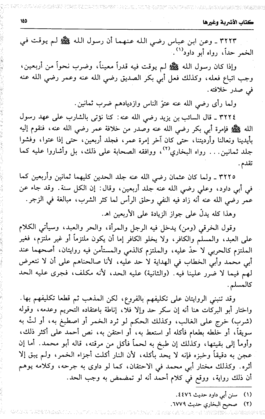 3223 وعن ابن عباس رضي الله عنهما 16 ( أن رسول الله لم يوقت في الخمر حداً ) ، رواه أبو داود .