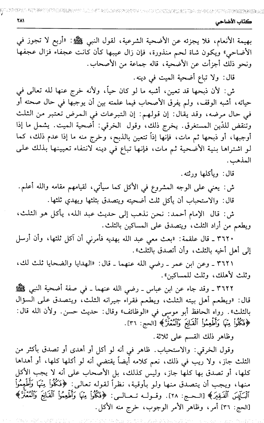 ش : قال الإمام أحمد : نحن نذهب إلى حديث عبد الله ، يأكل هو الثلث ، ويطعم من أراد الثلث ، ويتصدق على المساكين بالثلث .