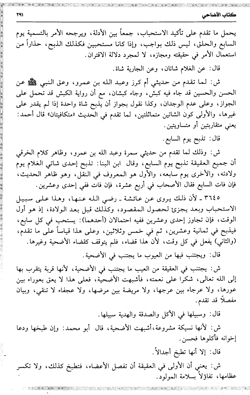 3645 لأن ذلك يروى عن عائشة رضي الله عنها ، وهذا على سبيل الاستحباب وبعد يجزئ لحصول المقصود ، وكذلك قبل بعد الولادة ، إذ هو أول الوقت ، فإن تجاوز إحدى وعشرين ففيه احتمالان ( أحدهما ) : يستحب في كل سابع ، فيذبح في ثمانية وعشرين ، ثم في خمس وثلاثين ، وعلى هذا قياساً على ما تقدم ، ( والثاني ) يفعل في كل وقت ، لأن هذا قضاء ، فلم يتوقف كقضاء الأضحية وغيرها .