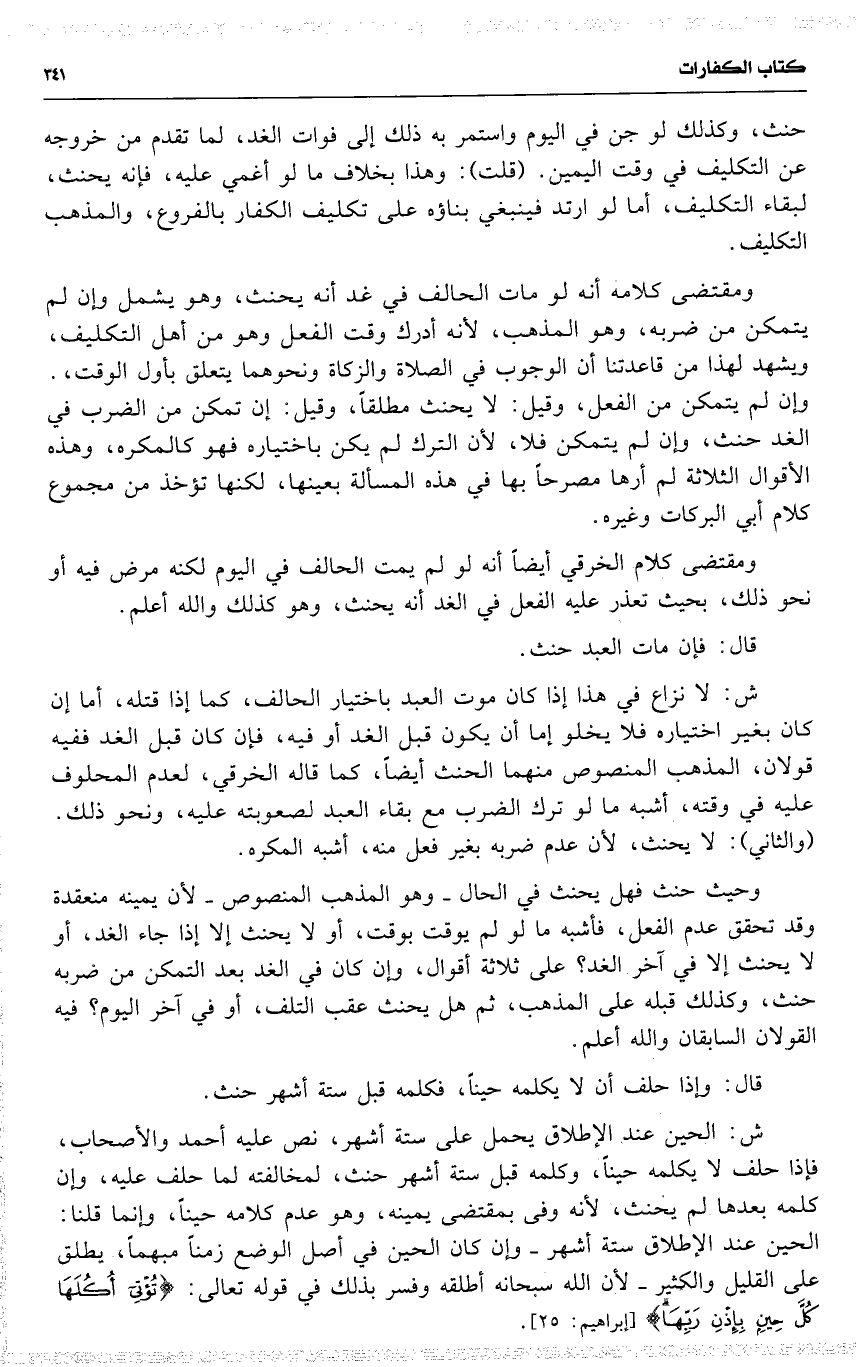 ش : الحين عند الإطلاق يحمل على ستة أشهر ، نص عليه أحمد والأصحاب ، فإذا حلف لا يكلمه حيناً ، وكلمه قبل ستة أشهر حنث ، لمخالفته لما حلف عليه ، وإن كلمه بعدها لم يحنث ، لأنه وفى بمقتضى يمينه ، وهو عدم كلامه حيناً ، وإنما قلنا : الحين عند الإطلاق ستة أشهر وإن كان الحين في أصل الوضع زمناً مبهماً ، يطلق على القليل والكثير لأن الله سبحانه أطلقه وفسر بذلك في قوله تعالى : 19 ( { تؤتي أكلها كل حين بإذن ربها } ) .