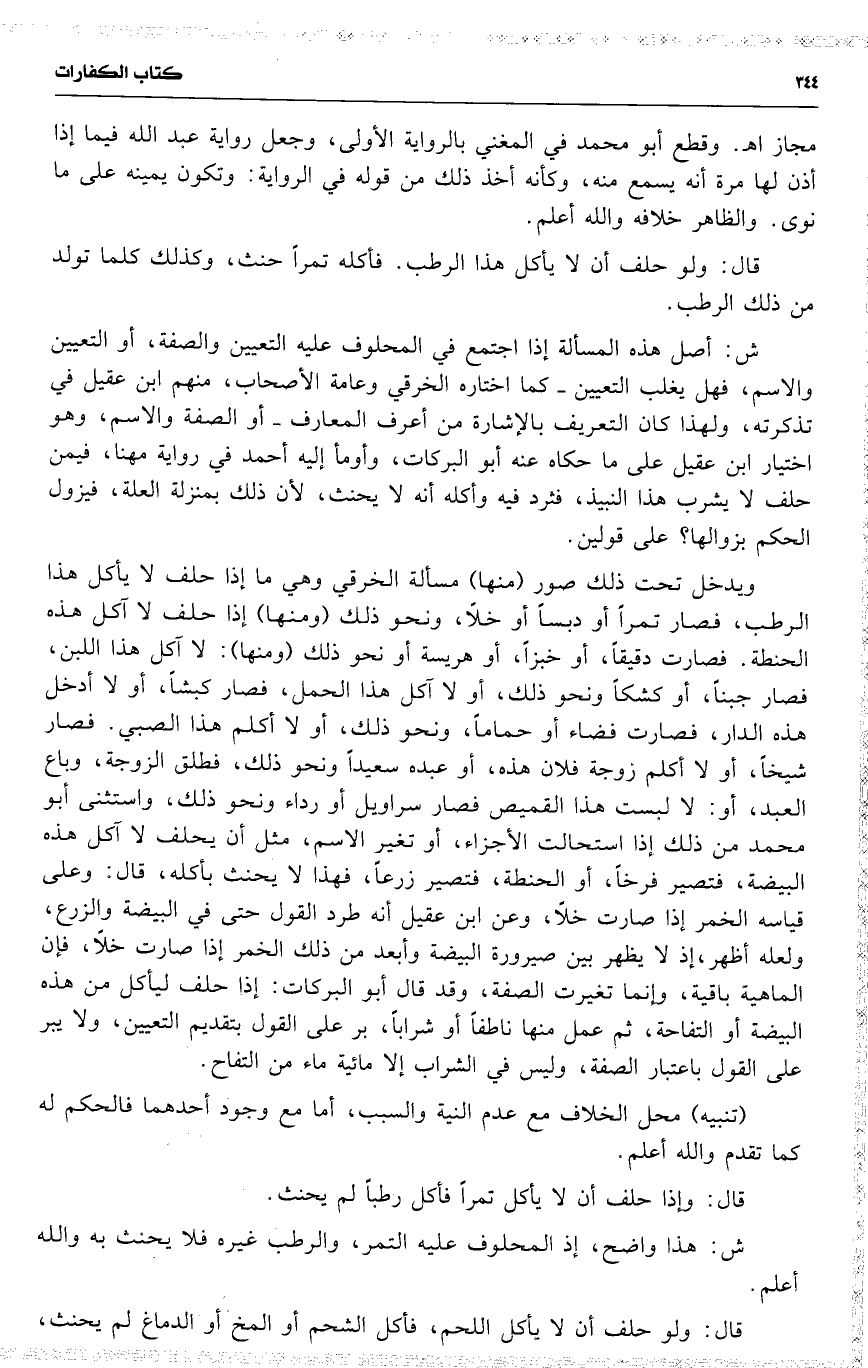 ش : أصل هذه المسألة إذا اجتمع في المحلوف عليه التعيين والصفة ، أو التعيين والاسم ، فهل يغلب التعيين كما اختاره الخرقي وعامة الأصحاب ، منهم ابن عقيل في تذكرته ، ولهذا كان التعريف بالإشارة من أعرف المعارف أو الصفة والاسم ، وهو اختيار ابن عقيل على ما حكاه عنه أبو البركات ، وأومأ إليه أحمد في رواية مهنا ، فيمن حلف لا يشرب هذا النبيذ ، فثرد فيه وأكله أنه لا يحنث ، لأن ذلك بمنزلة العلة ، فيزول الحكم بزوالها ؟ على قولين .