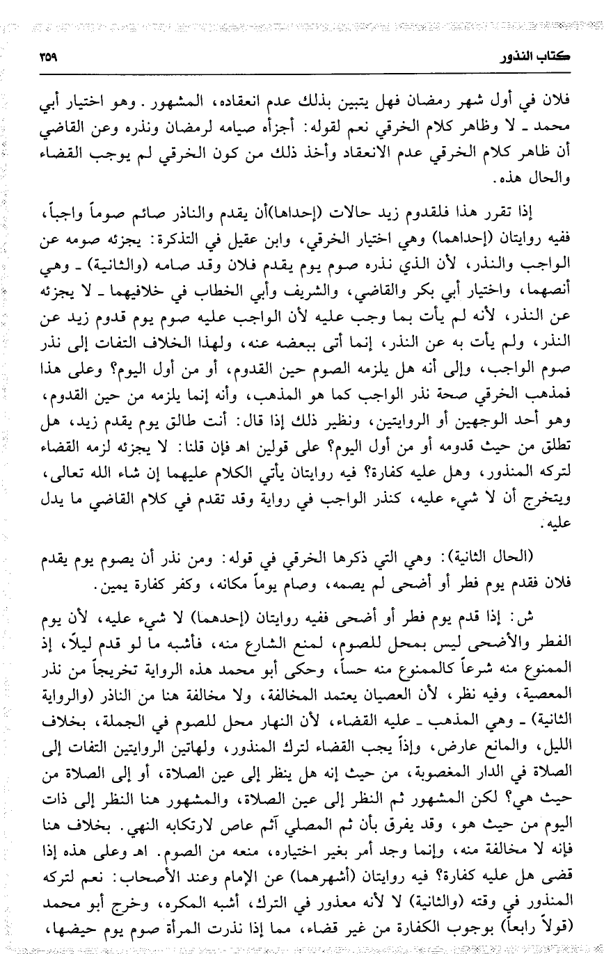 إذا تقرر هذا فلقدوم زيد حالات ( إحداها ) أن يقدم والناذر صائم صوماً واجباً ، ففيه روايتان ( إحداهما ) وهي اختيار الخرقي ، وابن عقيل في التذكرة : يجزئه صومه عن الواجب والنذر ، لأن الذي نذره صوم يوم يقدم فلان وقد صامه ( والثانية ) وهي أنصهما ، واختيار أبي بكر والقاضي ، والشريف وأبي الخطاب في خلافيهما لا يجزئه عن النذر ، لأنه لم يأت بما وجب عليه لأن الواجب عليه صوم يوم قدوم زيد عن النذر ، ولم يأت به عن النذر ، إنما أتى ببعضه عنه ، ولهذا الخلاف التفات إلى نذر صوم الواجب ، وإلى أنه هل يلزمه الصوم حين القدوم ، أو من أول اليوم ؟ وعلى هذا فمذهب الخرقي صحة نذر الواجب كما هو المذهب ، وأنه إنما يلزمه من حين القدوم ، وهو أحد الوجهين أو الروايتين ، ونظير ذلك إذا قال : أنت طالق يوم يقدم زيد ، هل تطلق من حيث قدومه أو من أول اليوم ؟ على قولين اه فإن قلنا : لا يجزئه لزمه القضاء لتركه المنذور ، وهل عليه كفارة ؟ فيه روايتان يأتي الكلام عليهما إن شاء الله تعالى ، ويتخرج أن لا شيء عليه ، كنذر الواجب في رواية وقد تقدم في كلام القاضي ما يدل عليه .