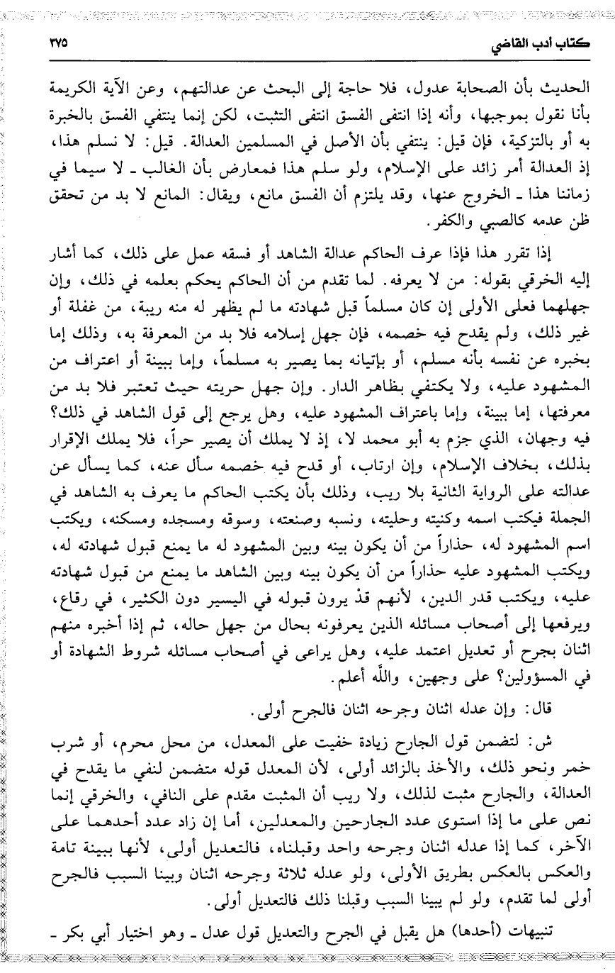 ش : لتضمن قول الجارح زيادة خفيت على المعدل ، من محل محرم ، أو شرب خمر ونحو ذلك ، والأخذ بالزائد أولى ، لأن المعدل قوله متضمن لنفي ما يقدح في العدالة ، والجارح مثبت لذلك ، ولا ريب أن المثبت مقدم على النافي ، والخرقي إنما نص على ما إذا استوى عدد الجارحين والمعدلين ، أما إن زاد عدد أحدهما على الآخر ، كما إذا عدله اثنان وجرحه واحد وقبلناه ، فالتعديل أولى ، لأنها ببينة تامة والعكس بالعكس بطريق الأولى ، ولو عدله ثلاثة وجرحه اثنان وبينا السبب فالجرح أولى لما تقدم ، ولو لم يبينا السبب وقبلنا ذلك فالتعديل أولى .