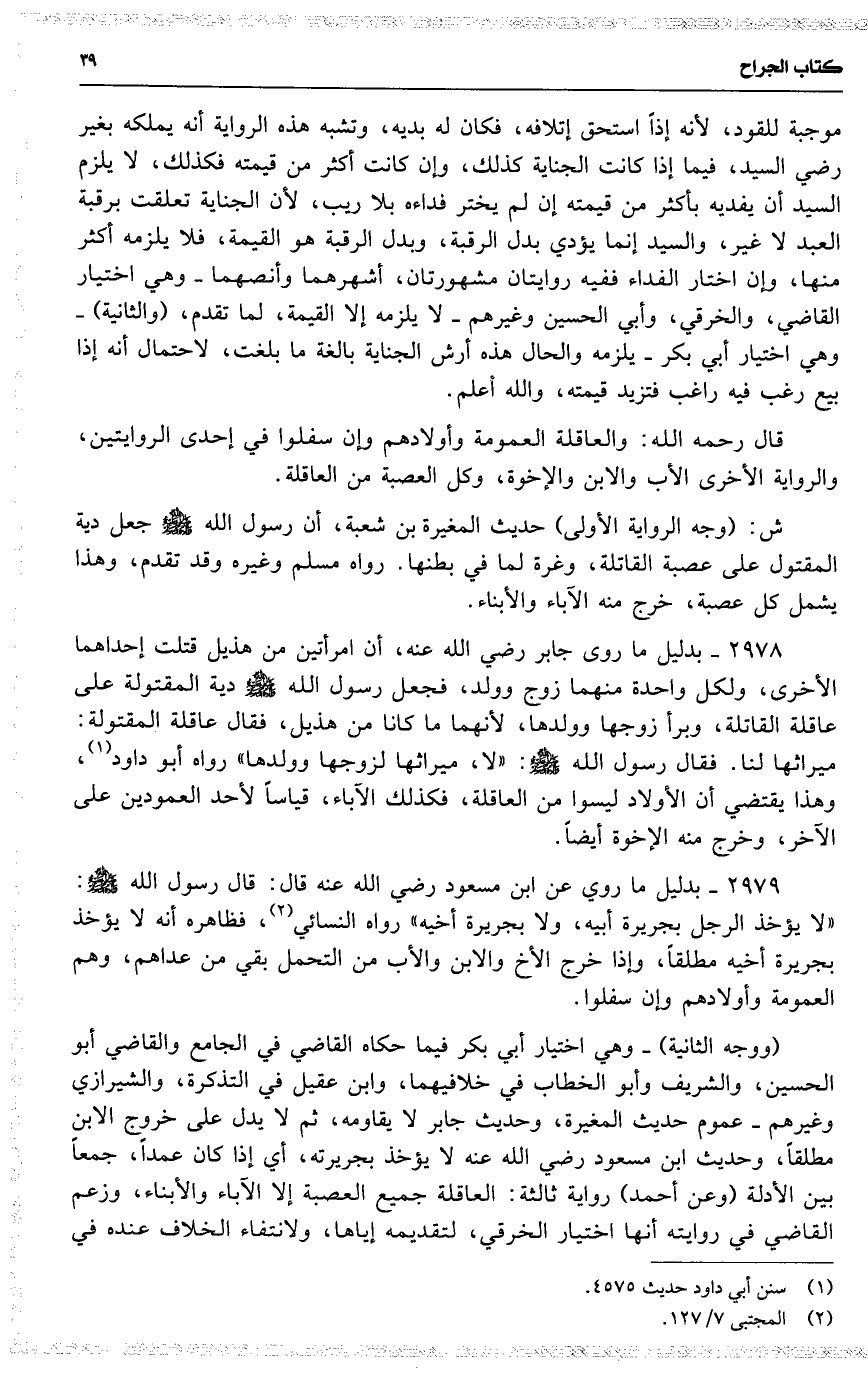 2979 بدليل ما روي عن ابن مسعود رضي الله عنه قال : قال رسول الله : ( لا يؤخذ الرجل بجريرة أبيه ، ولا بجريرة أخيه ) رواه النسائي ، فظاهره أنه لا يؤخذ بجريرة أخيه مطلقاً ، وإذا خرج الأخ والابن والأب من التحمل بقي من عداهم ، وهم العمومة وأولادهم وإن سفلوا .