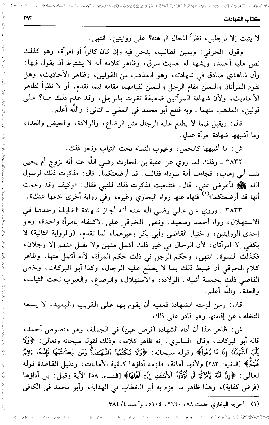 ش : ظاهر هذا أن أداء الشهادة ( فرض عين ) في الجملة ، وهو منصوص أحمد ، قاله أبو البركات ، وقال السامري : إنه ظاهر كلامه ، وذلك لقوله سبحانه وتعالى : 19 ( { ولا يأب الشهداء إذا ما دعوا } ) وقوله سبحانه : [ ب 2 ] 19 ( { ولا تكتموا الشهادة ، ومن يكتمها فإنه آثم قلبه } ) [ ب 1 ] ولأنها أمانة ، فلزمه أداؤها كبقية الأمانات ، ودليل القاعدة قوله تعالى : [ ب 2 ] 19 ( { إن اللَّه يأمركم أن تؤدوا الأمانات إلى أهلها } ) [ ب 1 ] الآية وقيل : بل أداؤها ( فرض كفاية ) ، وهذا ظاهر ما جزم به أبو الخطاب في الهداية ، وأبو محمد في الكافي