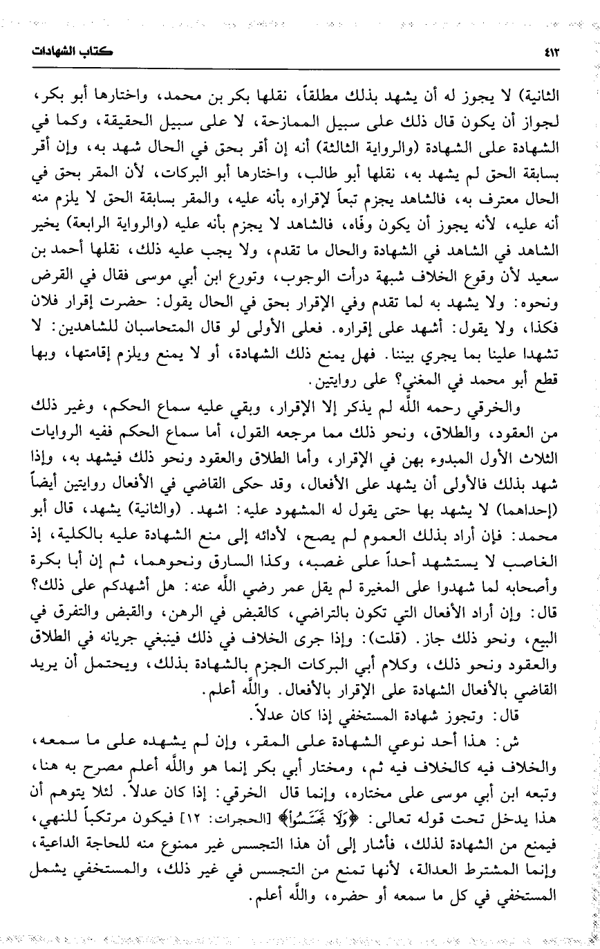 والخرقي رحمه اللَّه لم يذكر إلا الإقرار ، وبقي عليه سماع الحكم ، وغير ذلك من العقود ، والطلاق ، ونحو ذلك مما مرجعه القول ، أما سماع الحكم ففيه الروايات الثلاث الأول المبدوء بهن في الإقرار ، وأما الطلاق والعقود ونحو ذلك فيشهد به ، وإذا شهد بذلك فالأولى أن يشهد على الأفعال ، وقد حكى القاضي في الأفعال روايتين أيضاً ( إحداهما ) لا يشهد بها حتى يقول له المشهود عليه : اشهد . ( والثانية ) يشهد ، قال أبو محمد : فإن أراد بذلك العموم لم يصح ، لأدائه إلى منع الشهادة عليه بالكلية ، إذ الغاصب لا يستشهد أحداً على غصبه ، وكذا السارق ونحوهما ، ثم إن أبا بكرة وأصحابه لما شهدوا على المغيرة لم يقل عمر رضي اللَّه عنه : هل أشهدكم على ذلك ؟ قال : وإن أراد الأفعال التي تكون بالتراضي ، كالقبض في الرهن ، والقبض والتفرق في البيع ، ونحو ذلك جاز . ( قلت ) : وإذا جرى الخلاف في ذلك فينبغي جريانه في الطلاق والعقود ونحو ذلك ، وكلام أبي البركات الجزم بالشهادة بذلك ، ويحتمل أن يريد القاضي بالأفعال الشهادة على الإقرار بالأفعال . واللَّه أعلم .
