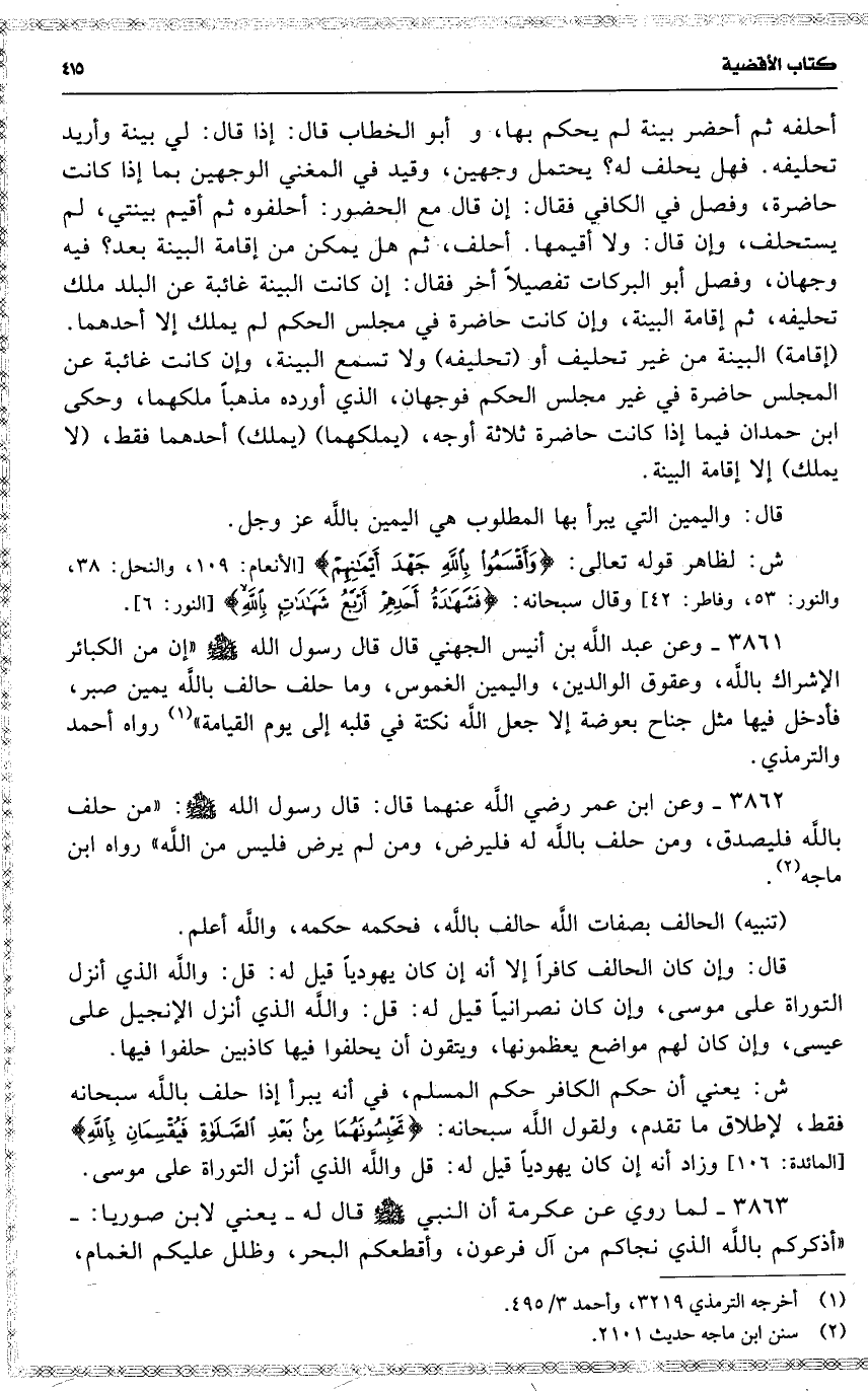 3862 وعن ابن عمر رضي اللَّه عنهما قال : قال رسول اللَّه : ( من حلف باللَّه فليصدق ، ومن حلف باللَّه له فليرض ، ومن لم يرض فليس من اللَّه ) رواه ابن ماجه .