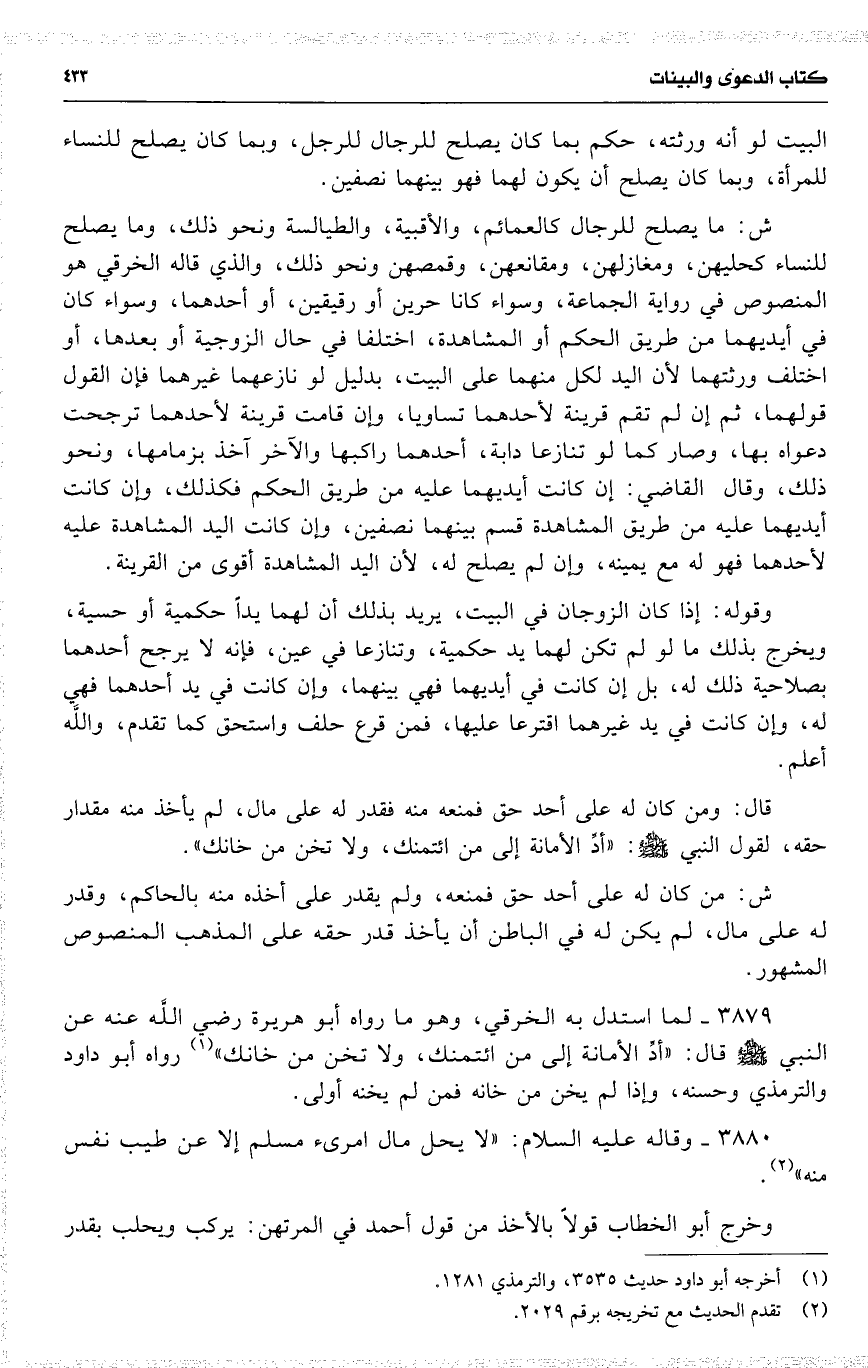 3879 لما استدل به الخرقي ، وهو ما رواه أبو هريرة رضي اللَّه عنه عن النبي قال : ( أدِّ الأمانة إلى من ائتمنك ، ولا تخن من خانك ) رواه أبو داود والترمذي وحسنه ، وإذا لم يخن من خانه فمن لم يخنه أولى .