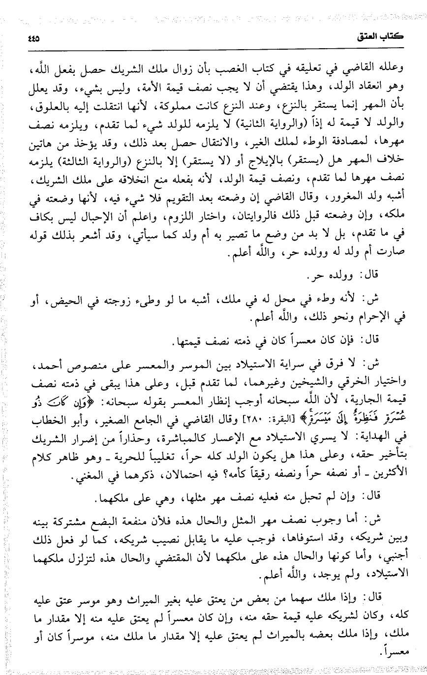 ش : لا فرق في سراية الاستيلاد بين الموسر والمعسر على منصوص أحمد ، واختيار الخرقي والشيخين وغيرهما ، لما تقدم قبل ، وعلى هذا يبقى في دمته نصف قيمة الجارية ، لأن اللَّه سبحانه أوجب إنظار المعسر بقوله سبحانه : [ ب 2 ] 19 ( { وإن كان ذو عسرة فنظرة إلى ميسرة } ) [ ب 1 ] وقال القاضي في الجامع الصغير ، وأبو الخطاب في الهداية : لا يسري الاستيلاد مع الإعسار كالمباشرة ، وحذاراً من إضرار الشريك بتأخير حقه ، وعلى هذا هل يكون الولد كله حراً ، تغليباً للحرية وهو ظاهر كلام الأكثرين أو نصفه حراً ونصفه رقيقاً كأمه ؟ فيه احتمالان ، ذكرهما في المغني .