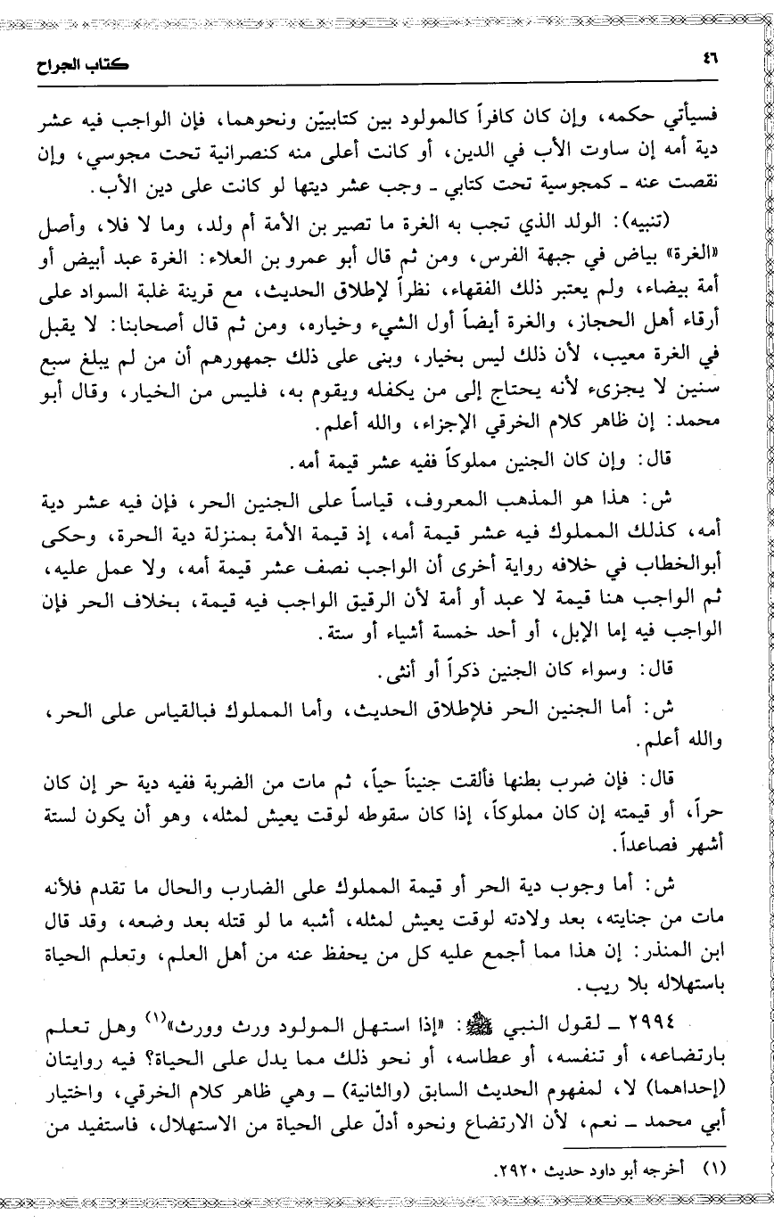 2994 لقول النبي : ( إذا استهل المولود ورث وورث ) وهل تعلم بارتضاعه ، أو تنفسه ، أو عطاسه ، أو نحو ذلك مما يدل على الحياة ؟ فيه روايتان ( إحداهما ) لا ، لمفهوم الحديث السابق ( والثانية ) وهي ظاهر كلام الخرقي ، واختيار أبي محمد نعم ، لأن الارتضاع ونحوه أدلّ على الحياة من الاستهلال ، فاستفيد من