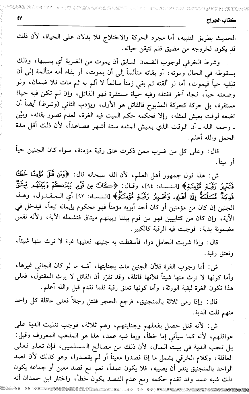 ش : هذا قول جمهور أهل العلم ، لأن الله سبحانه قال : 19 ( { ومن قتل مؤمناً خطأ فتحرير رقبة مؤمنة } ) وقال : 19 ( { وإن كان من قوم بينكم وبينهم ميثاق فدية مسلمة إلى أهله ، وتحرير رقبة مؤمنة } ) أي المقتول ، وهذا الجنين إن كان من مؤمنين أو كان أحد أبويه مؤمناً فهو محكوم بإيمانه تبعاً ، فيدخل في الآية ، وإن كان من كتابيين فهو من قوم بيننا وبينهم ميثاق فتشمله الآية ، ولأنه نفس مضمونة بدية ، فوجبت فيه الرقبة كالكبير .