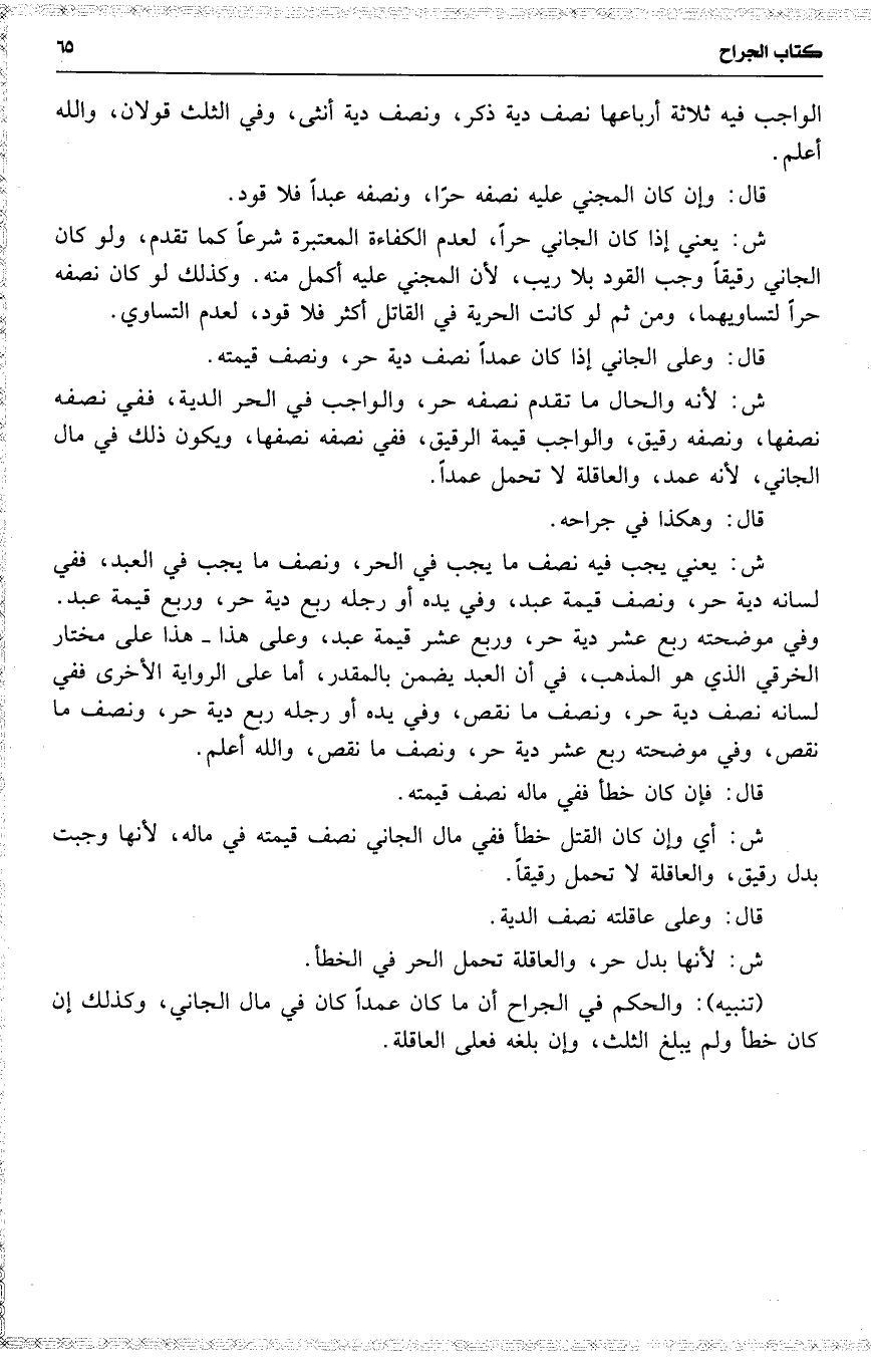 ( تنبيه ) : والحكم في الجراح أن ما كان عمداً كان في مال الجاني ، وكذلك إن كان خطأ ولم يبلغ الثلث ، وإن بلغه فعلى العاقلة .