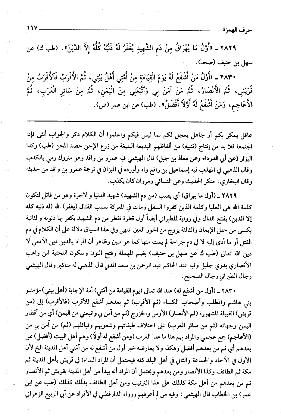 2830 (أول من أشفع له) عند الله تعالى (يوم القيامة من أمتي) أمة الإجابة (أهل بيتي) مؤمنو بني هاشم والمطلب وأصحاب الكساء (ثم الأقرب) ثم بعدهم أشفع للأقرب (فالأقرب) إلى (من