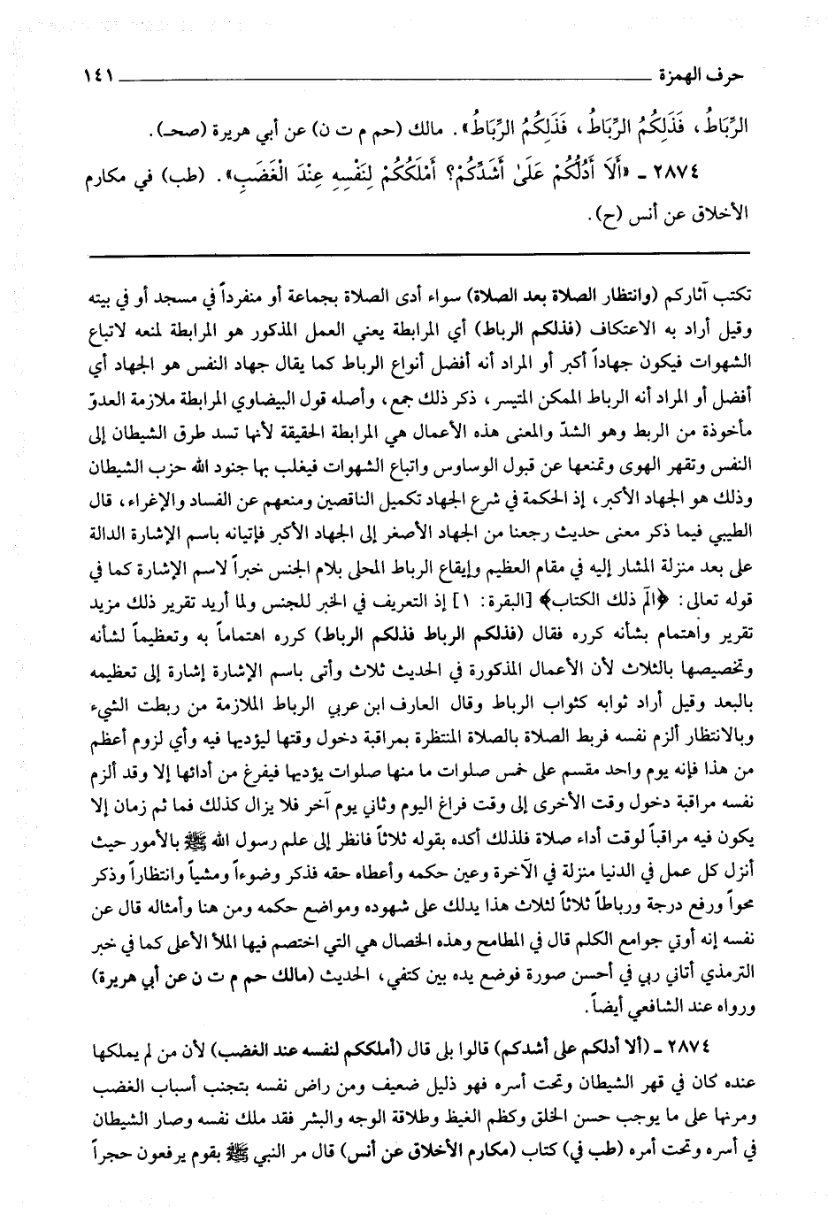 2874 (ألا أدلكم على أشدكم) قالوا : بلى قال : (أملككم لنفسه عند الغضب) لأن من لم يملكها