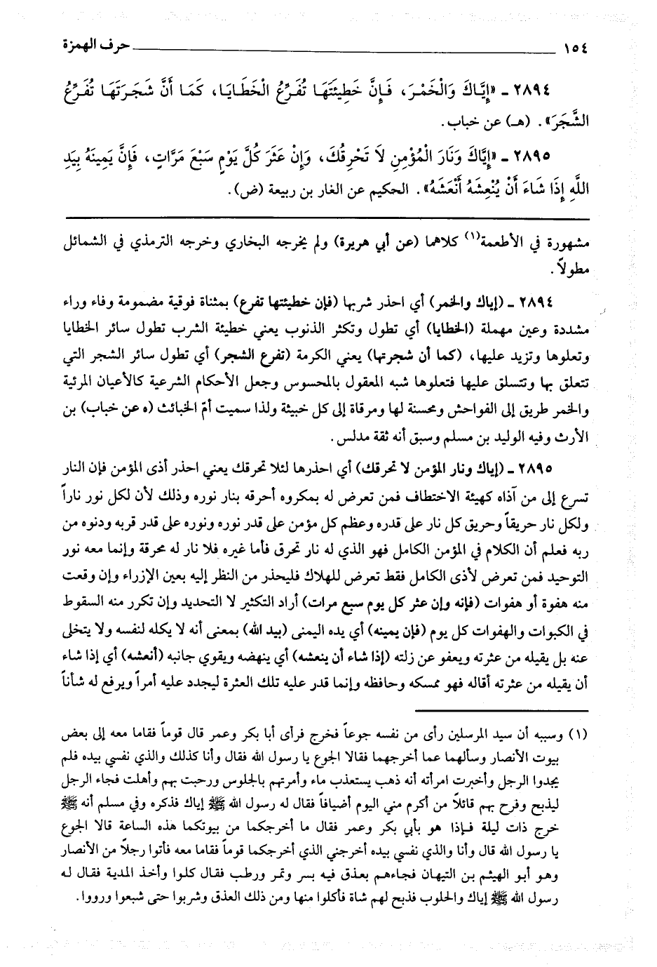 2895 (إياك ونار المؤمن لا تحرقك) أي احذرها لئلا تحرقك يعني احذر أذى المؤمن فإن النار تسرع إلى من آذاه كهيئة الاختطاف فمن تعرض بمكروه أحرقه بنار نوره وذلك لأن لكل نور نار ولكل نار حريقا وحريق كل نار على قدره وعظم كل مؤمن على قدر نوره ونوره على قدر قربه ودنوه من ربه فاعلم أن الكلام في المؤمن الكامل فهو الذي له نار تحرق فأما غيره فلا نار له محرقة وإنما معه نور التوحيد فمن تعرض لأذى الكامل فقد تعرض للهلاك فليحذر من النظر إليه بعين الإزراء وإن وقعت منه هفوة أو هفوات (فإنه وإن عثر كل يوم سبع مرات) أراد التكثير لا التحديد وإن تكرر منه السقوط في الكبوات والهفوات كل يوم (فإن يمينه) أي يده اليمنى (بيد الله) بمعنى أنه لا يكله لنفسه ولا يتخلى عنه بل يقيله من عثرته ويعفو عن زلته (إذا شاء أن ينعشه) أي ينهضه ويقوي جانبه (أنعشه) أي إذا شاء أن يقيله من عثرته أقاله فهو ممسكه وحافظه وإنما قدر عليه تلك العثرة ليجدد عليه أمرا ويرفع له شأنا