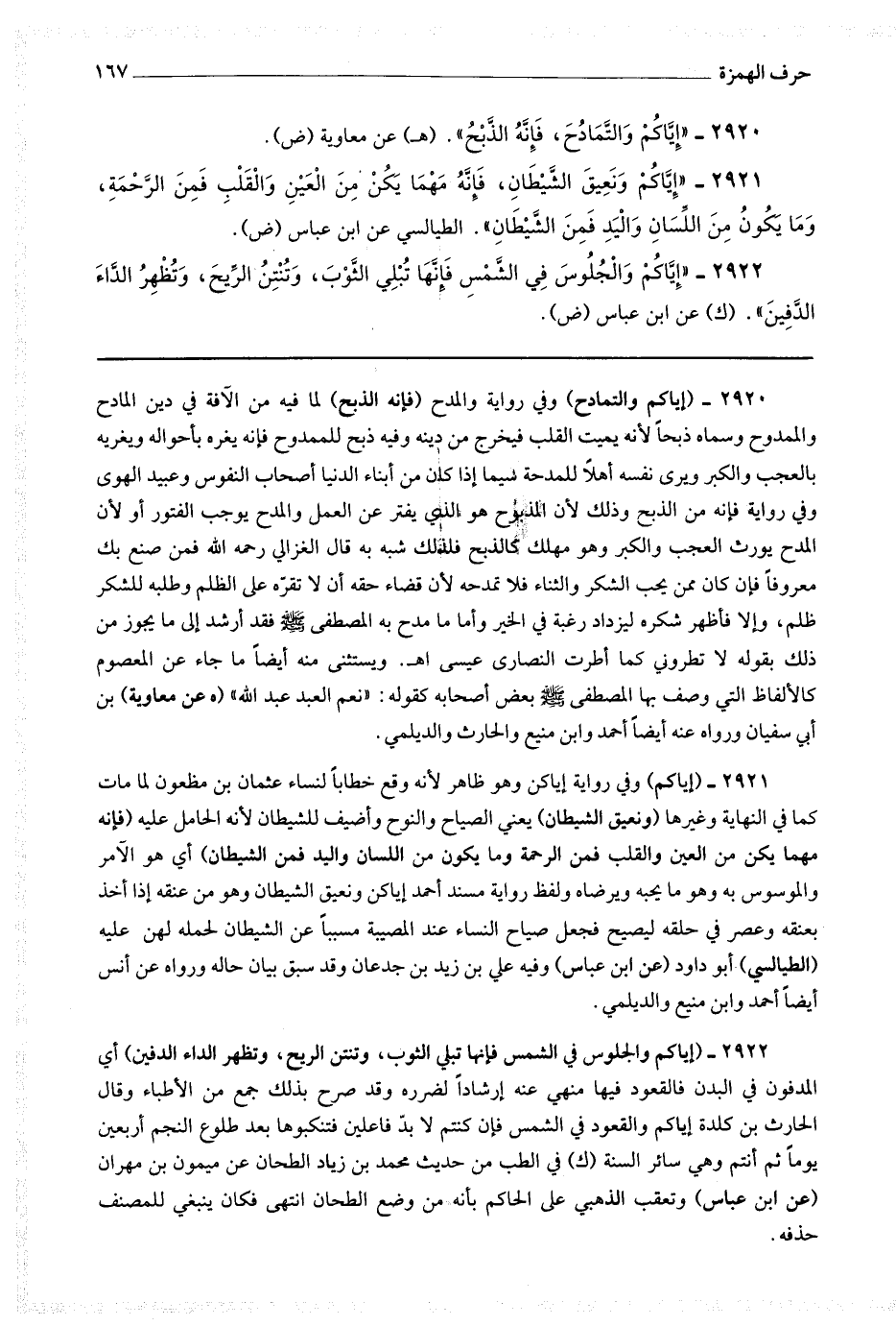2920 (إياكم والتمادح) وفي رواية والمدح (فإنه الذبح) لما فيه من الآفة في دين المادح والممدوح وسماه ذبحا لأنه يميت القلب فيخرج من دينه وفيه ذبح للممدوح فإنه يغره بأحواله ويغريه بالعجب والكبر ويرى نفسه أهلا للمدحة سيما إذا كان من أبناء الدنيا أصحاب النفوس وعبيد الهوى وفي رواية فإنه من الذبح وذلك لأن المذبوح هو الذي يفتر عن العمل والمدح يوجب الفتور أو لأن المدح يورث العجب والكبر وهو مهلك كالذبح فلذلك شبه به قال الغزالي رحمه الله : فمن صنع بك معروفا فإن كان ممن يحب الشكر والثناء فلا تمدحه لأن قضاء حقه أن لا تقره على الظلم وطلبه للشكر ظلم ، وإلا فأظهر شكره ليزداد رغبة في الخير وأما ما مدح به المصطفى صلى الله عليه وسلم فقد أرشد إلى ما يجوز من ذلك بقوله لا تطروني كما أطرت النصارى عيسى اه.